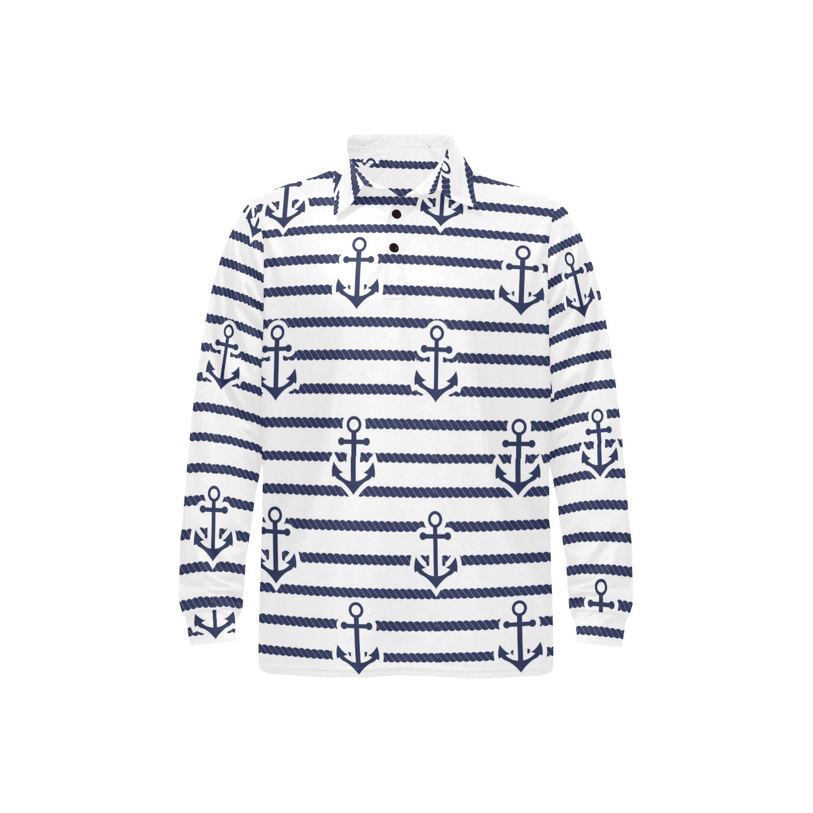Anchor rope nautical pattern Men's Long Sleeve Polo Shirt