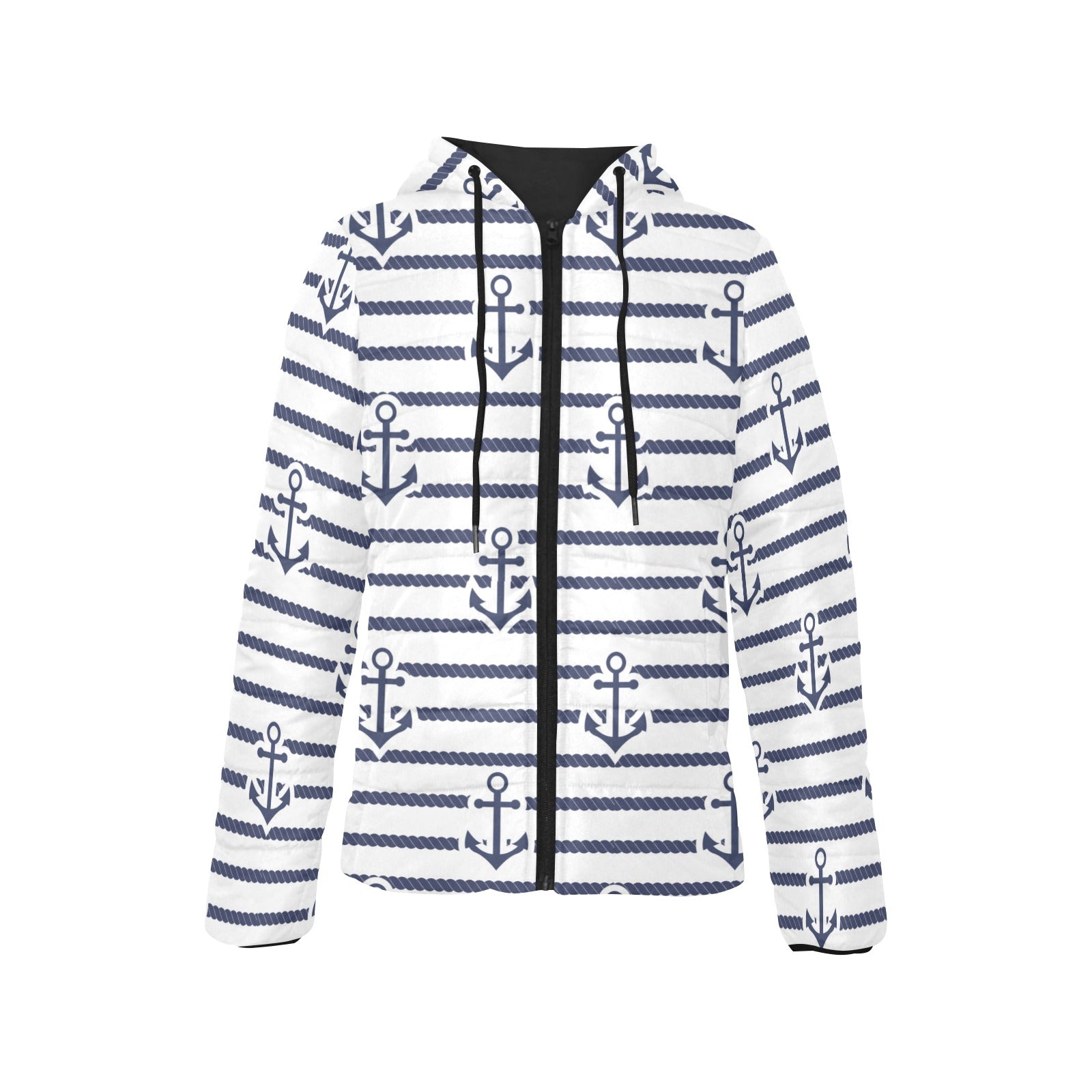 Anchor rope nautical pattern Women's Padded Hooded Jacket