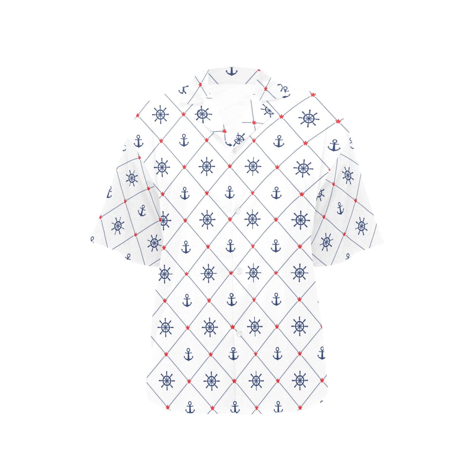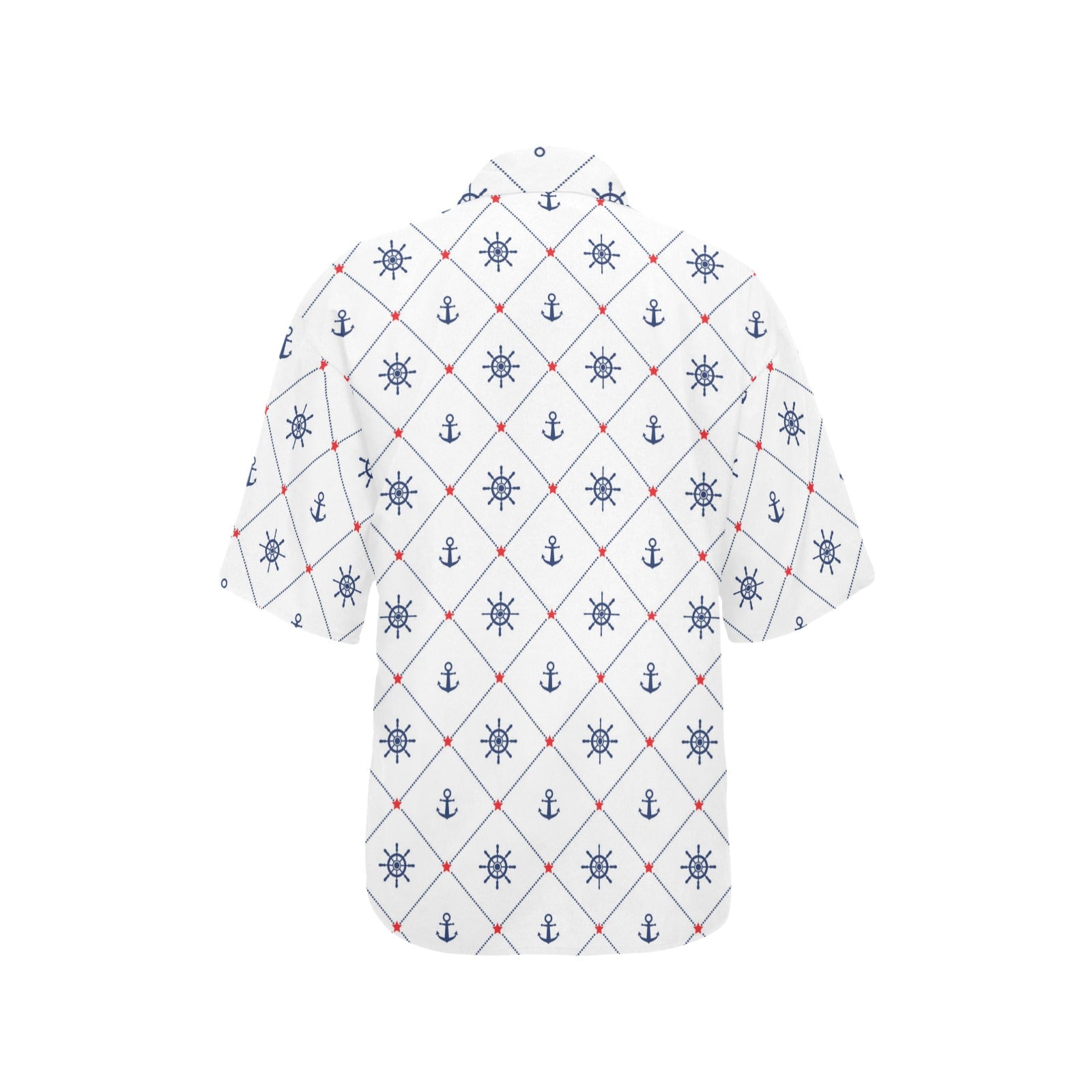 Anchor rudder nautical design pattern Women's All Over Print Hawaiian Shirt