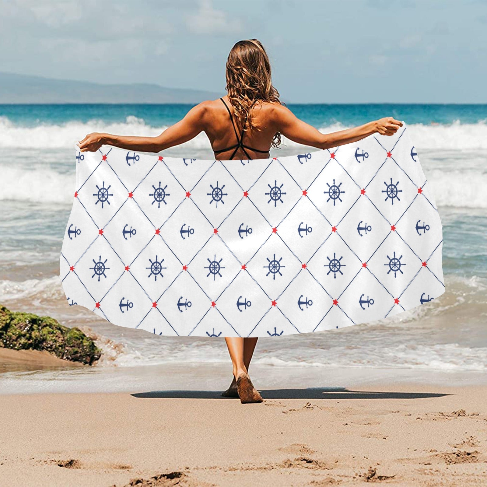 Anchor rudder nautical design pattern Beach Towel