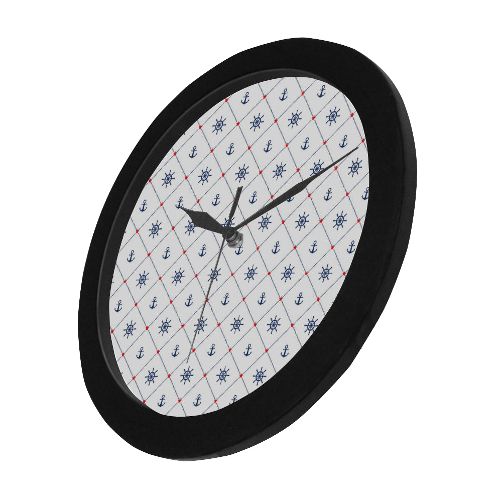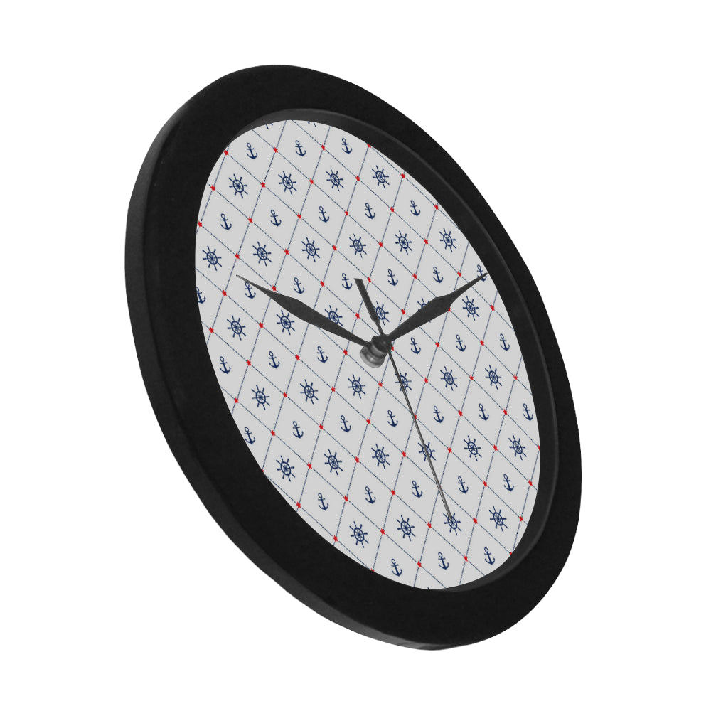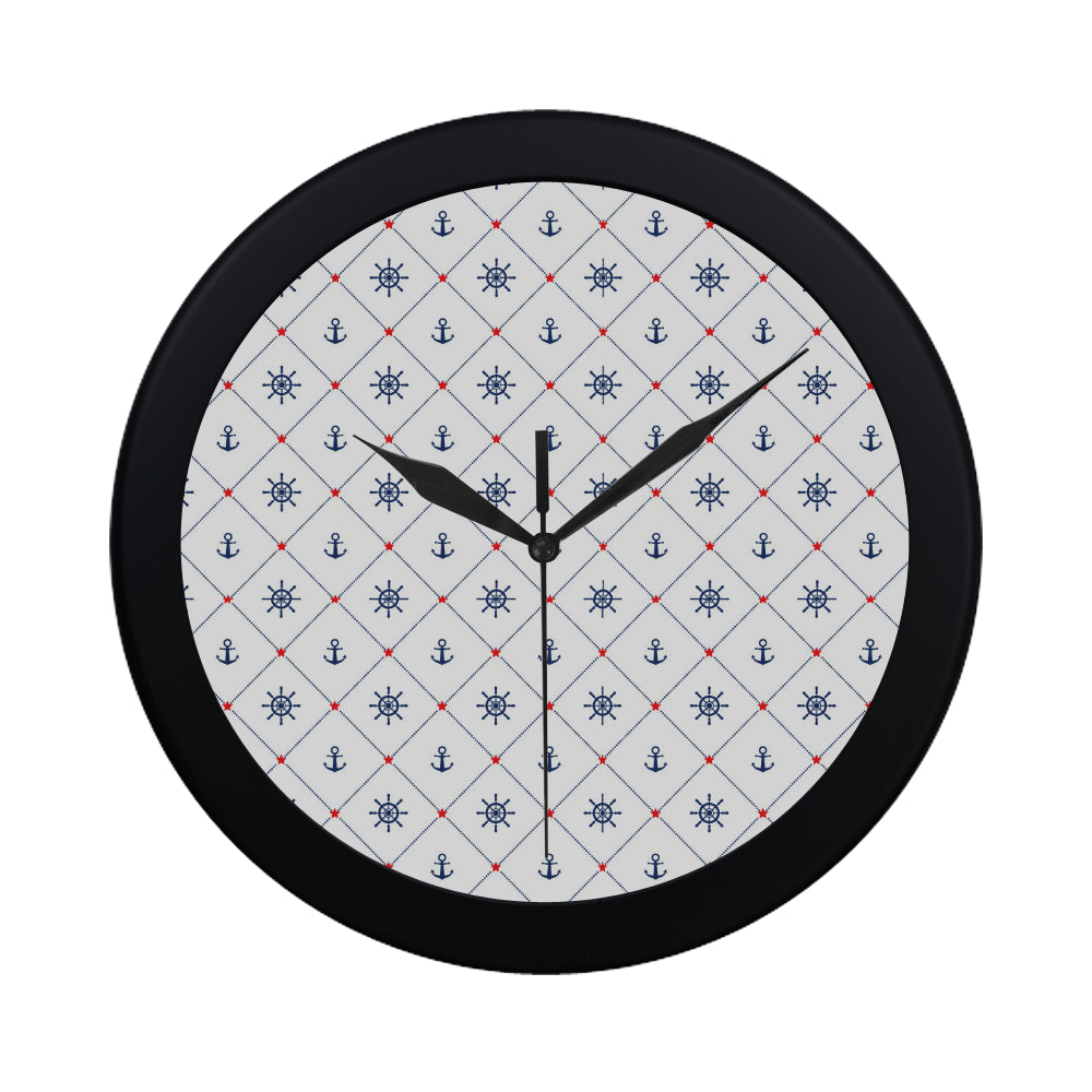 Anchor rudder nautical design pattern Elegant Black Wall Clock