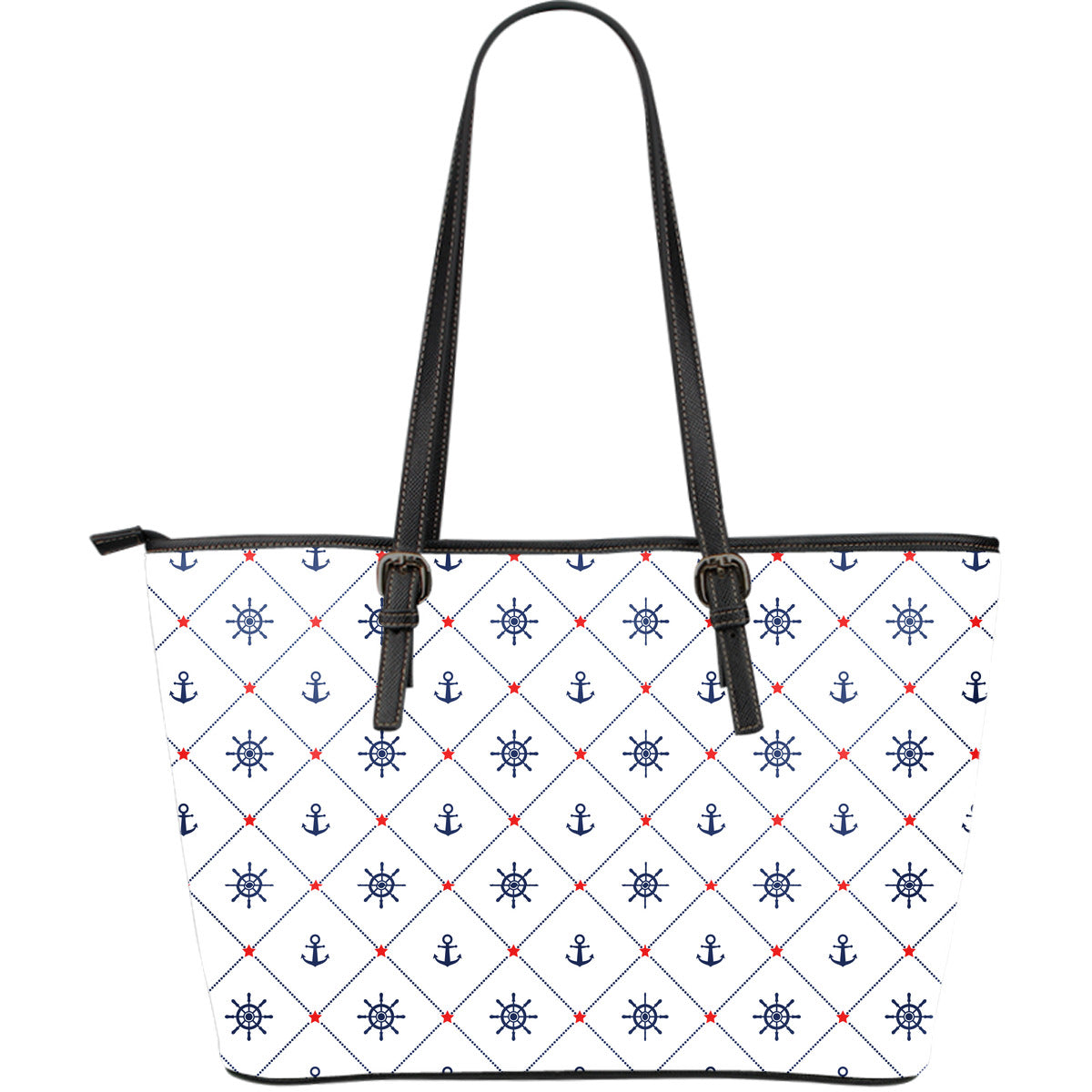 Anchor rudder nautical design pattern Large Leather Tote Bag is a uniqued design and limited item. It made to order, hand printed, and sewn with love in our factory.