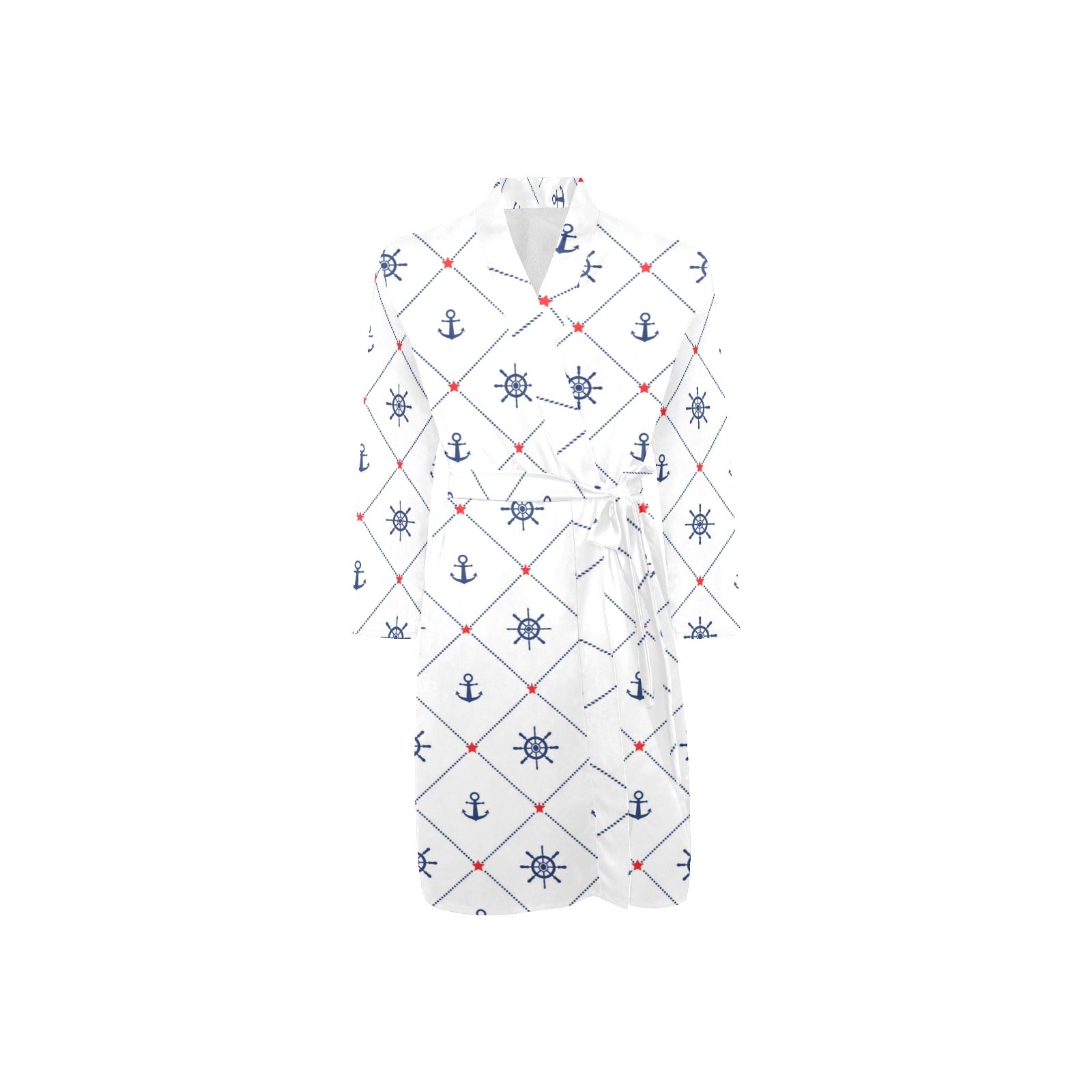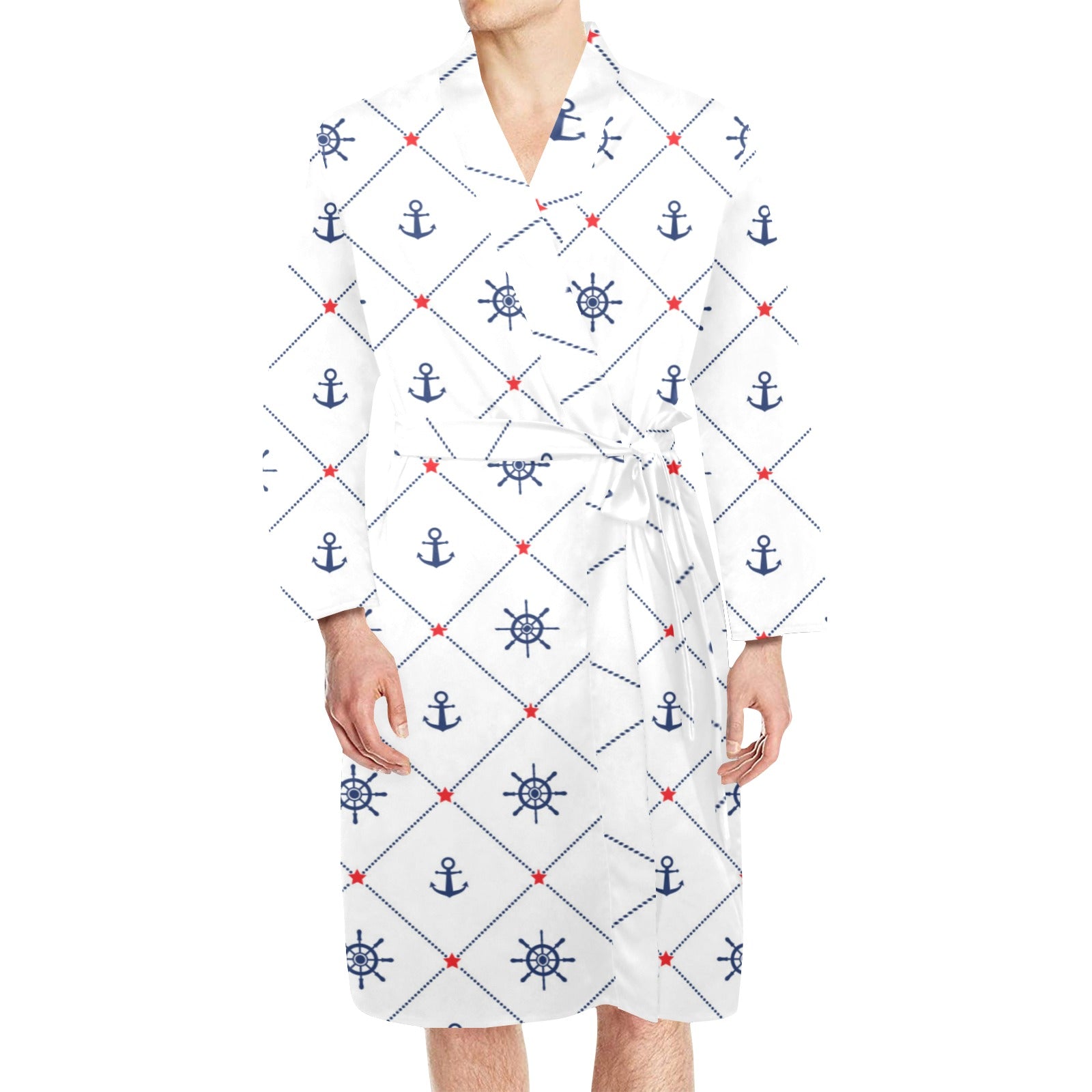 Anchor rudder nautical design pattern Men's Long Sleeve Belted Night Robe
