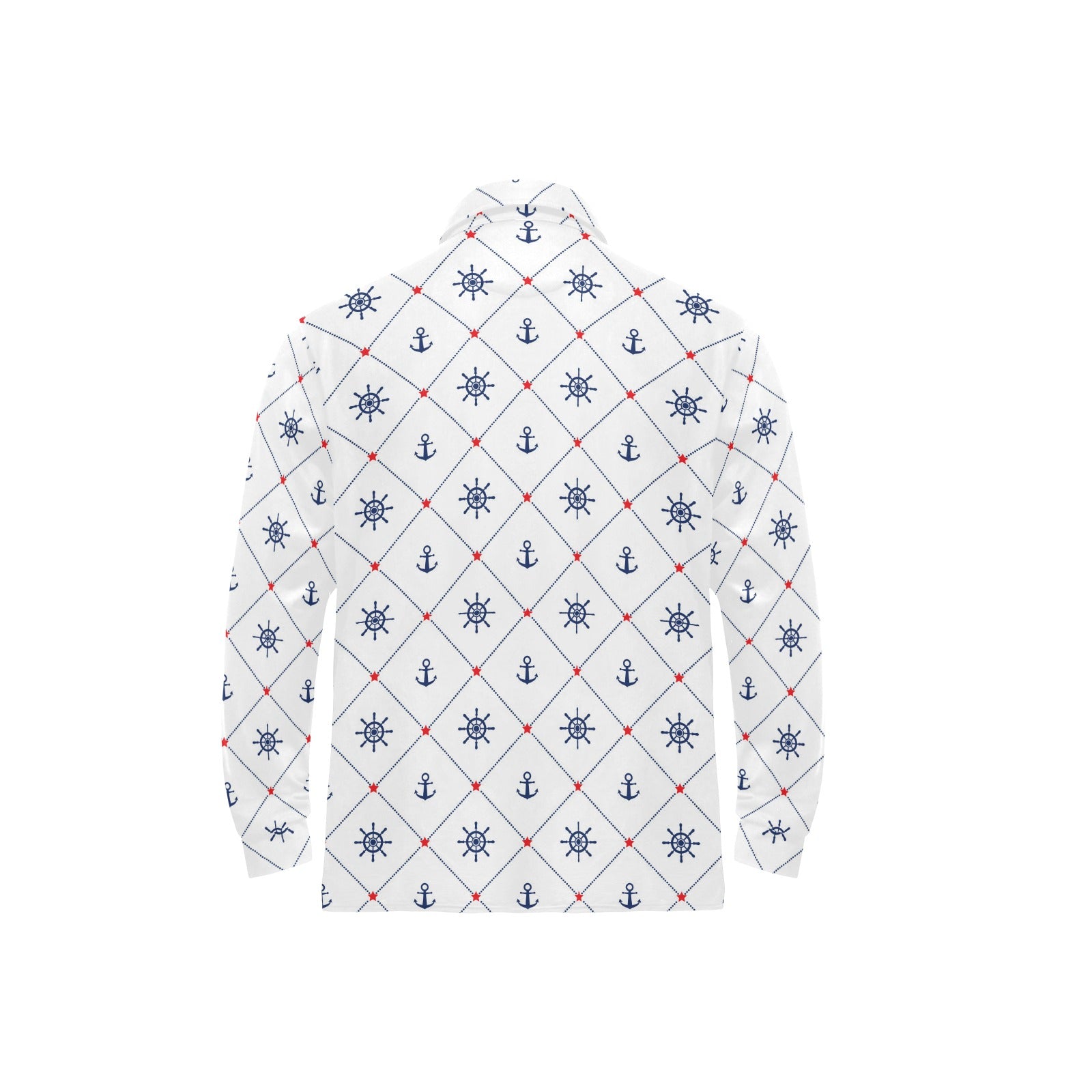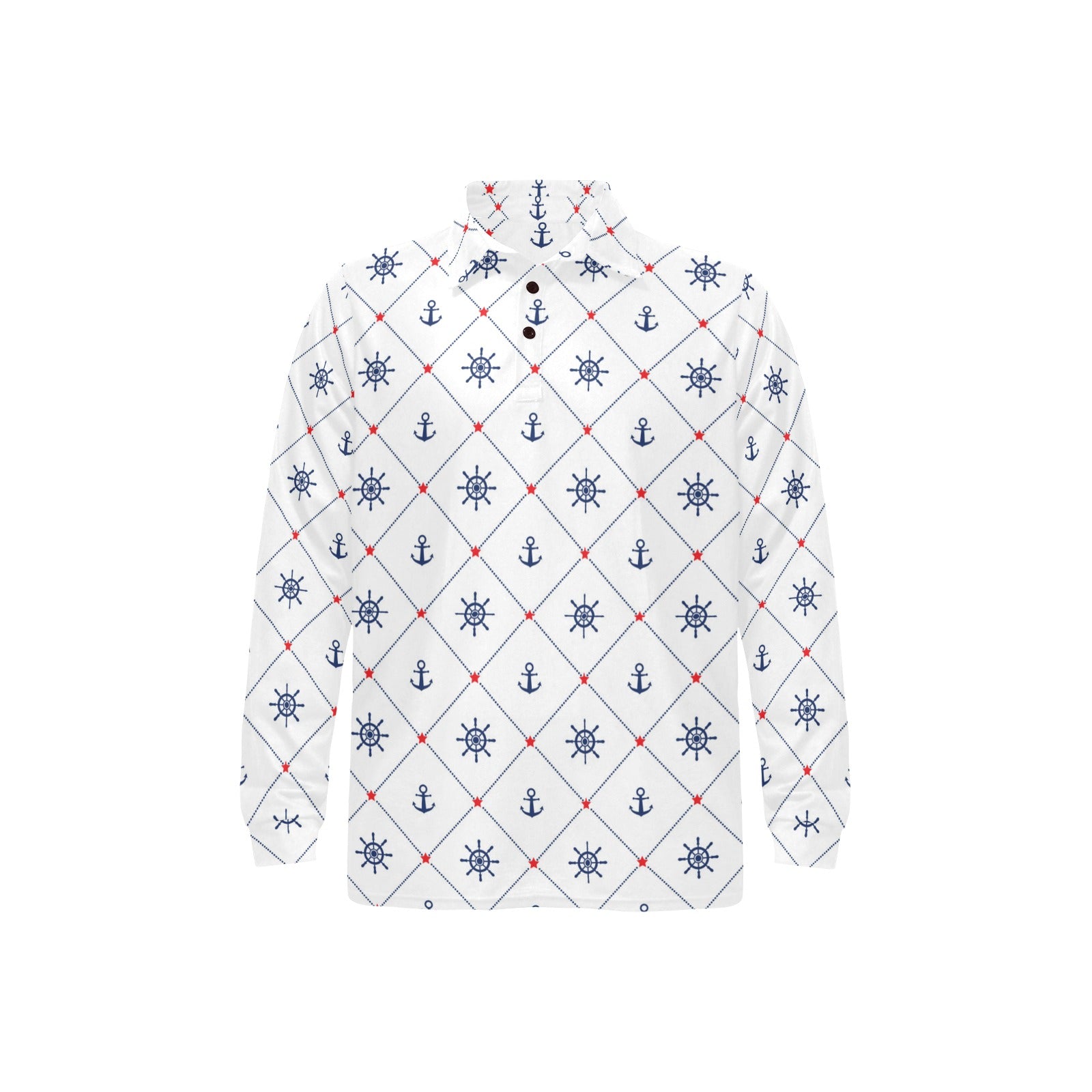 Anchor rudder nautical design pattern Men's Long Sleeve Polo Shirt