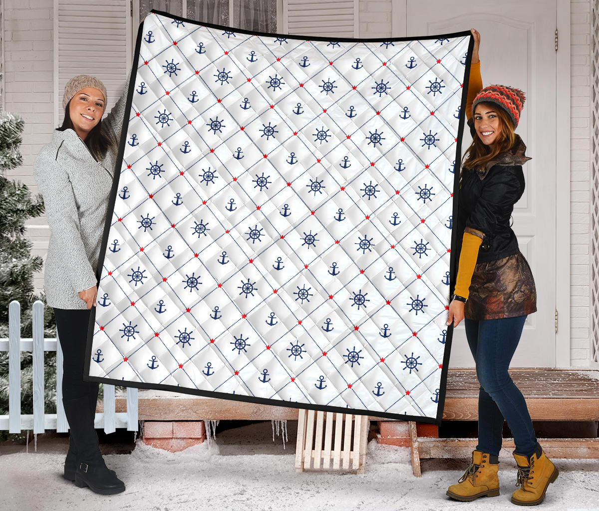 Anchor Rudder Nautical Design Pattern Premium Quilt. is a uniqued design and limited item. It made to order, hand printed, and sewn with love in our factory.