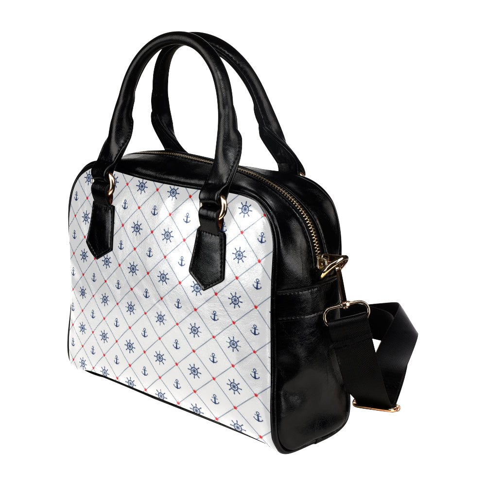 Anchor rudder nautical design pattern Shoulder Handbag is a uniqued design and limited item. It made to order, hand printed, and sewn with love in our factory.