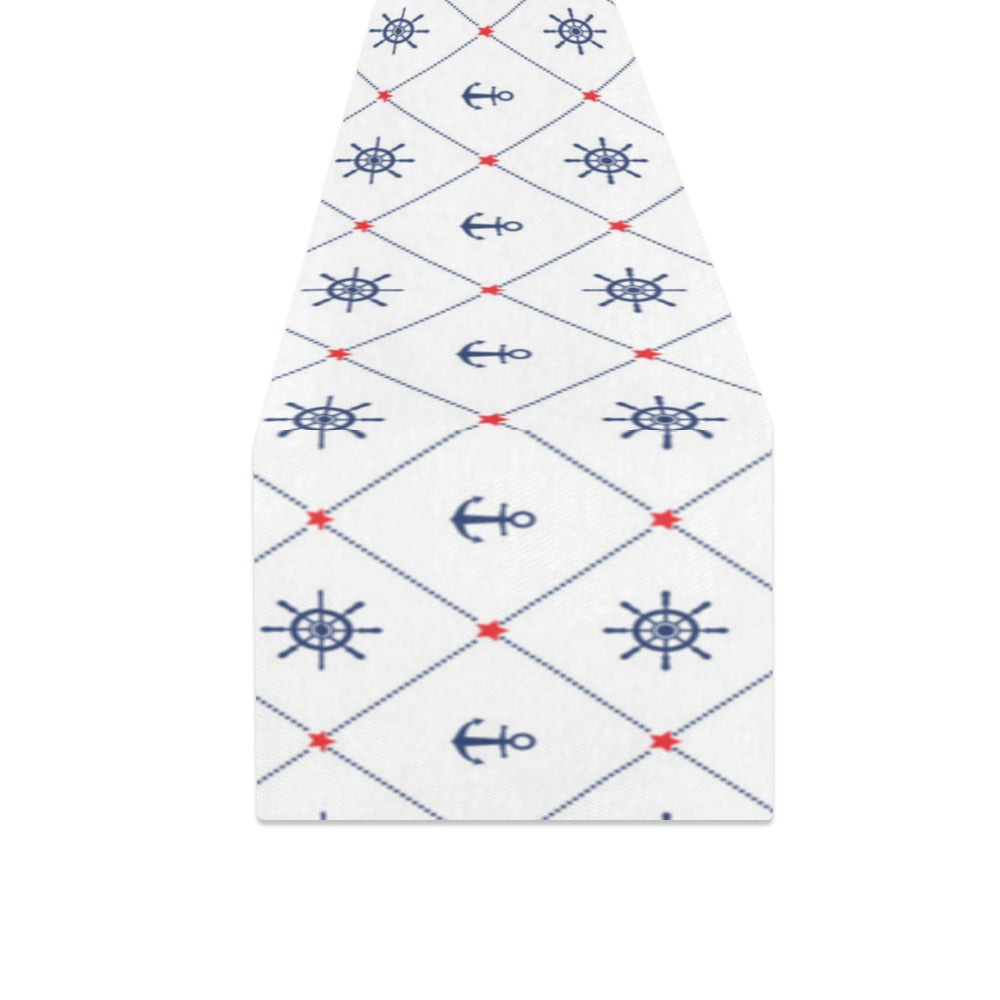 Anchor rudder nautical design pattern Table Runner