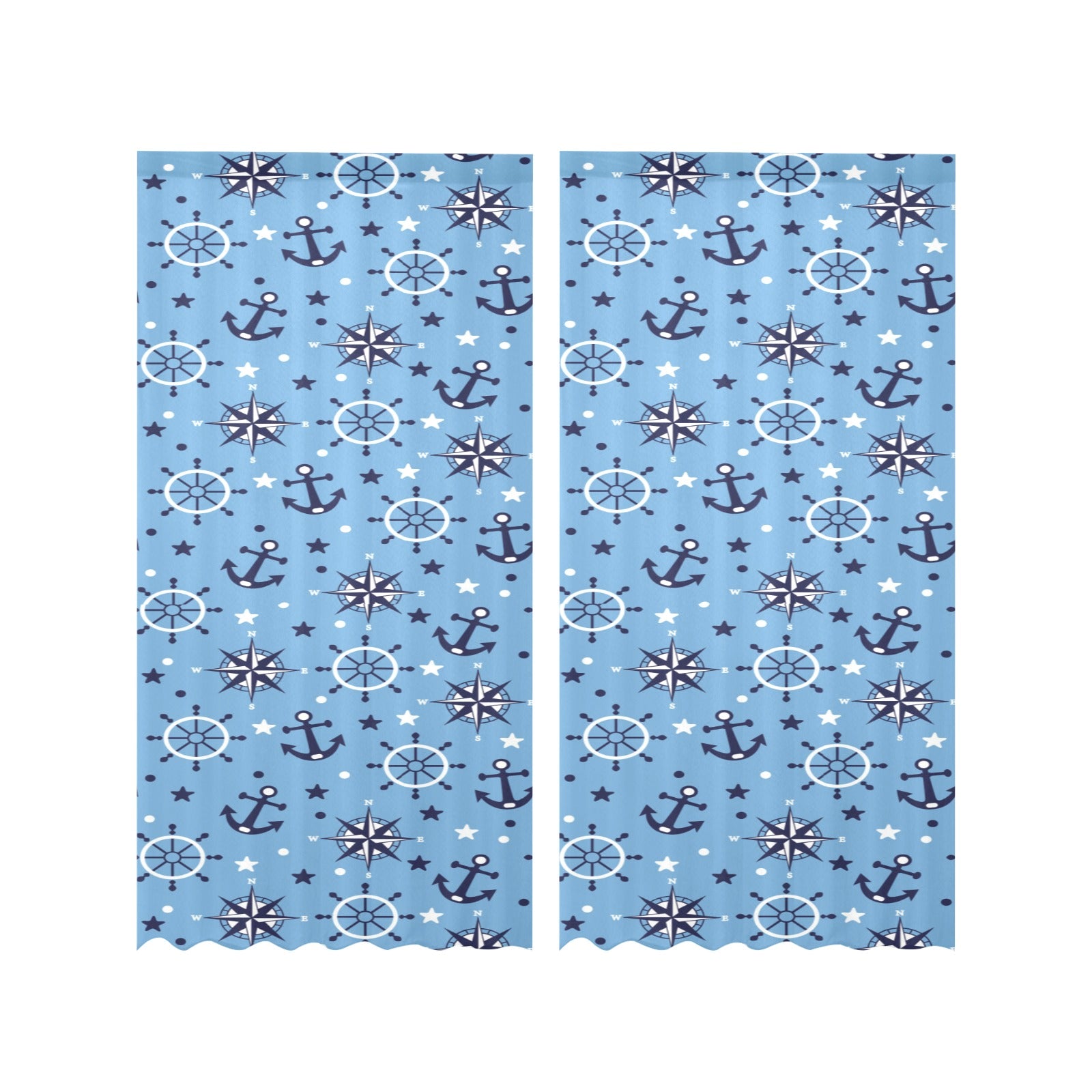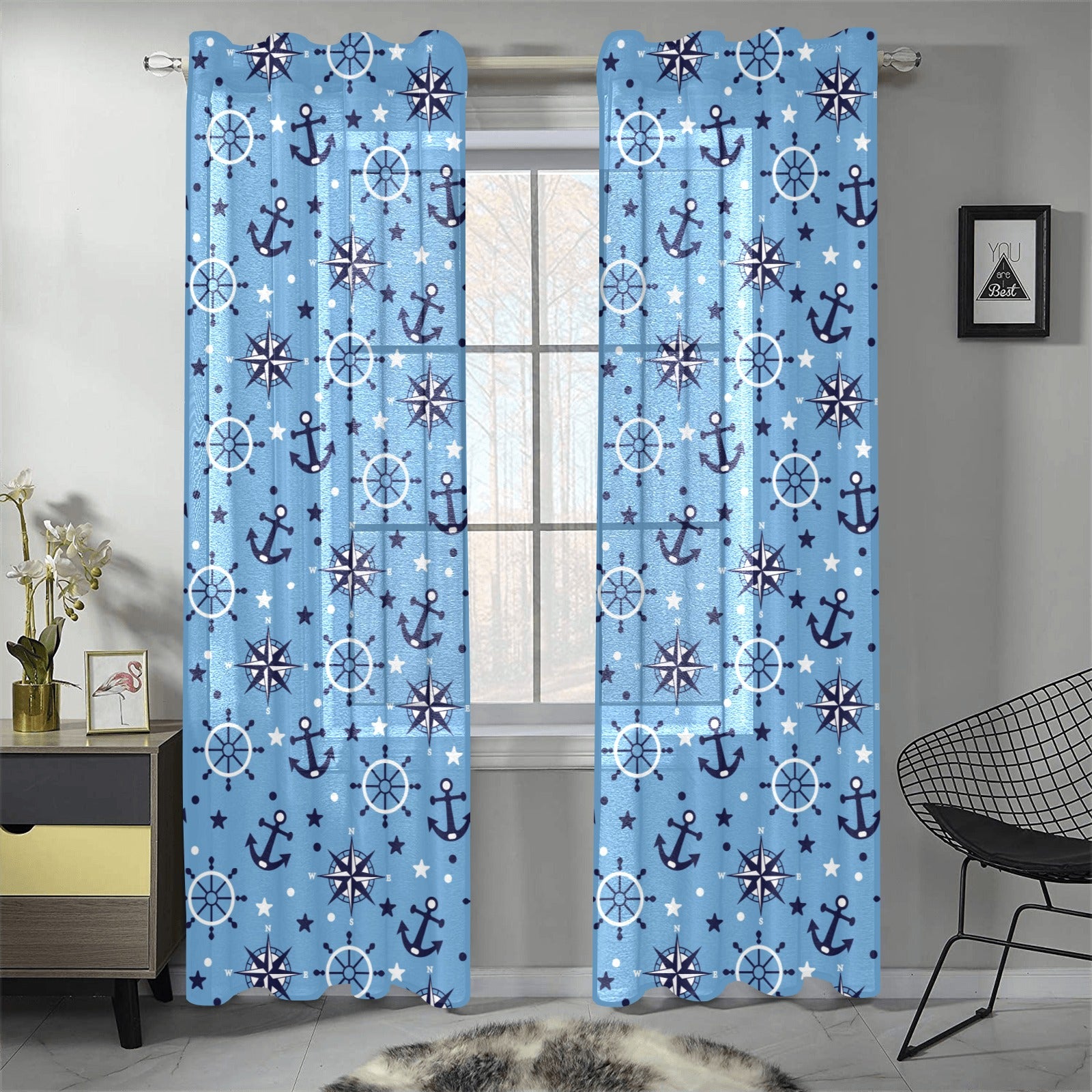 Anchors rudder compass star nautical pattern Gauze Curtain