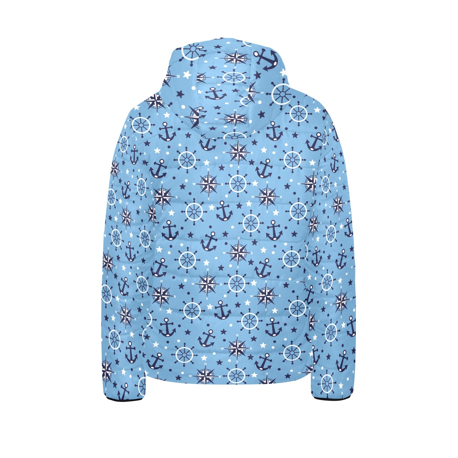Anchors rudder compass star nautical pattern Kids' Boys' Girls' Padded Hooded Jacket
