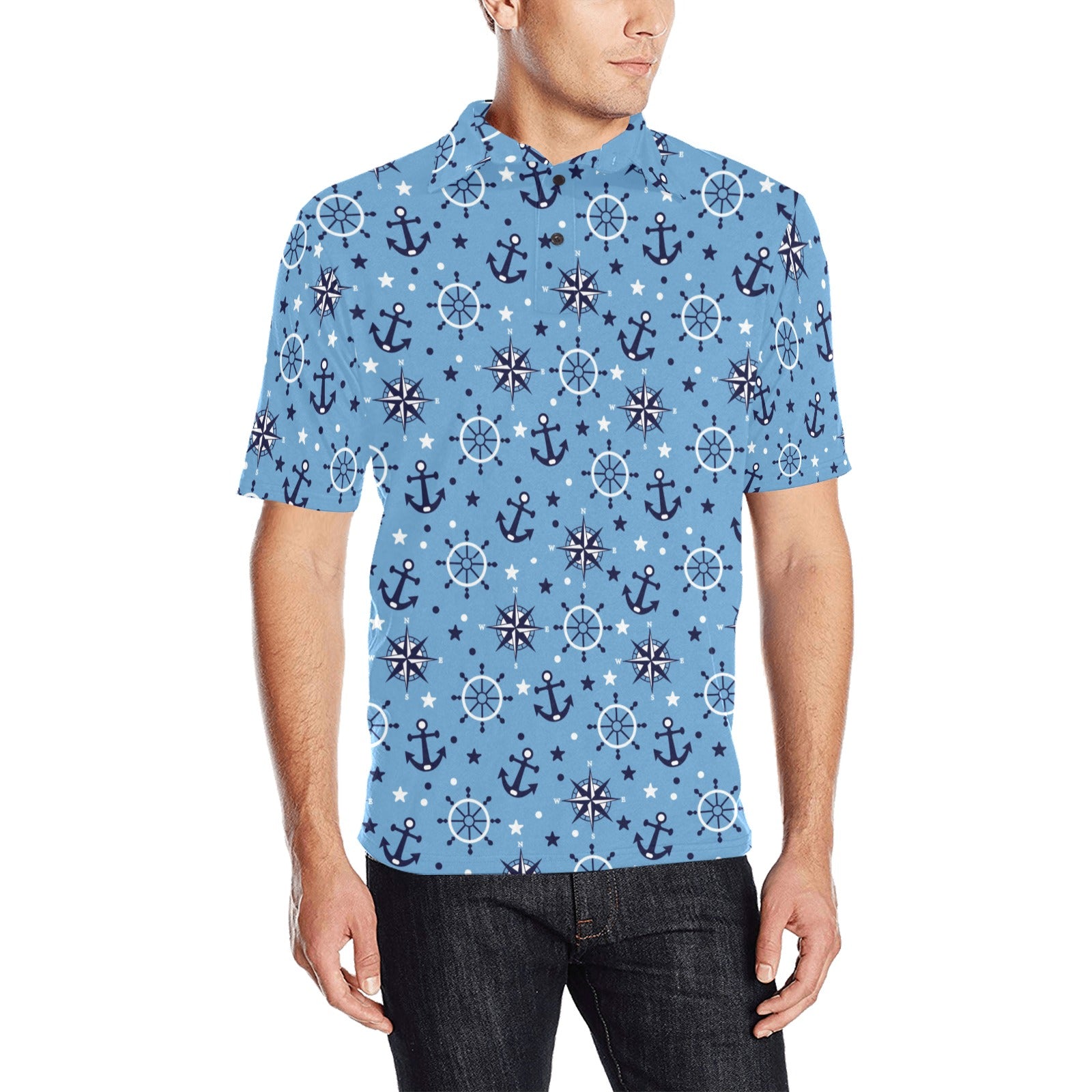 Anchors rudder compass star nautical pattern Men's All Over Print Polo Shirt