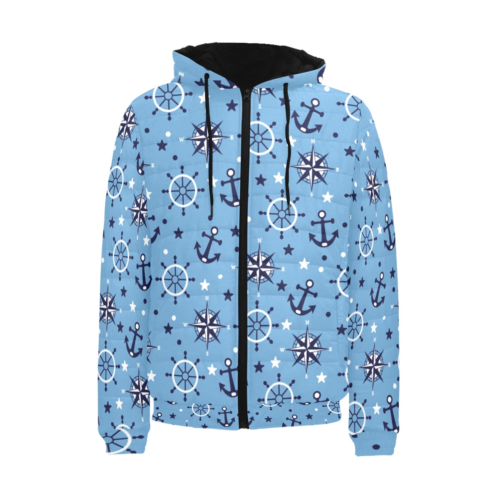 Anchors rudder compass star nautical pattern Men's Padded Hooded Jacket