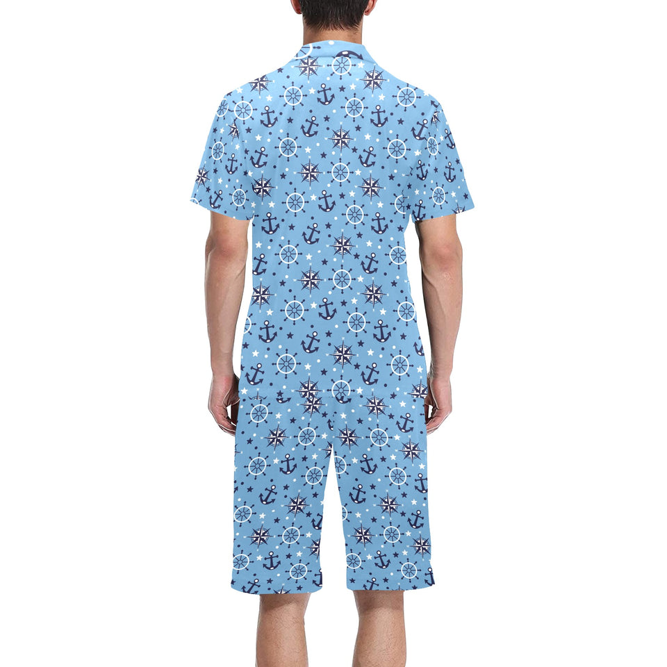 Anchors rudder compass star nautical pattern Men's V-Neck Short Pajama Set