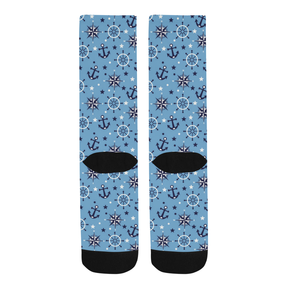 Anchors rudder compass star nautical pattern Crew Socks