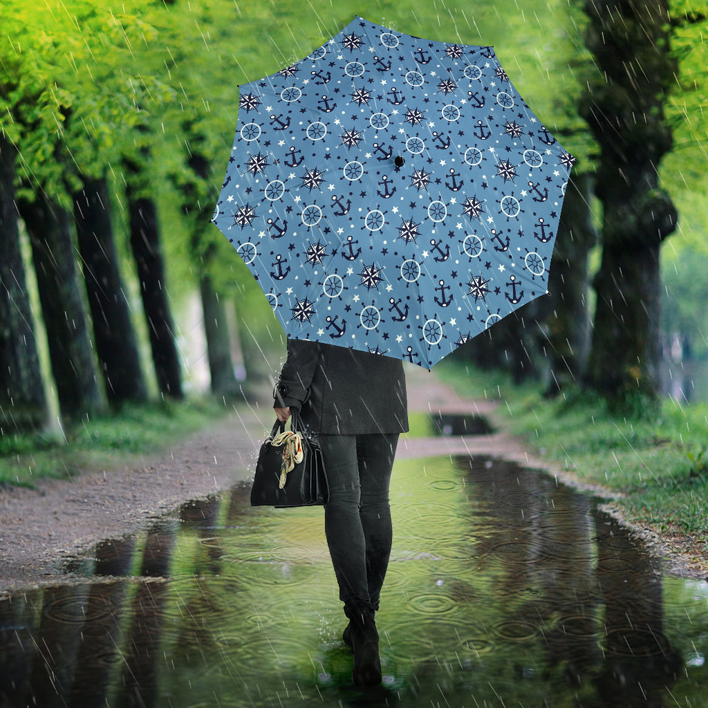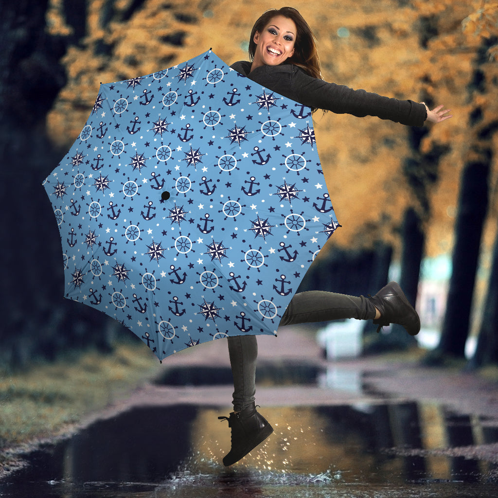 Anchors Rudder Compass Star Nautical Pattern Umbrella