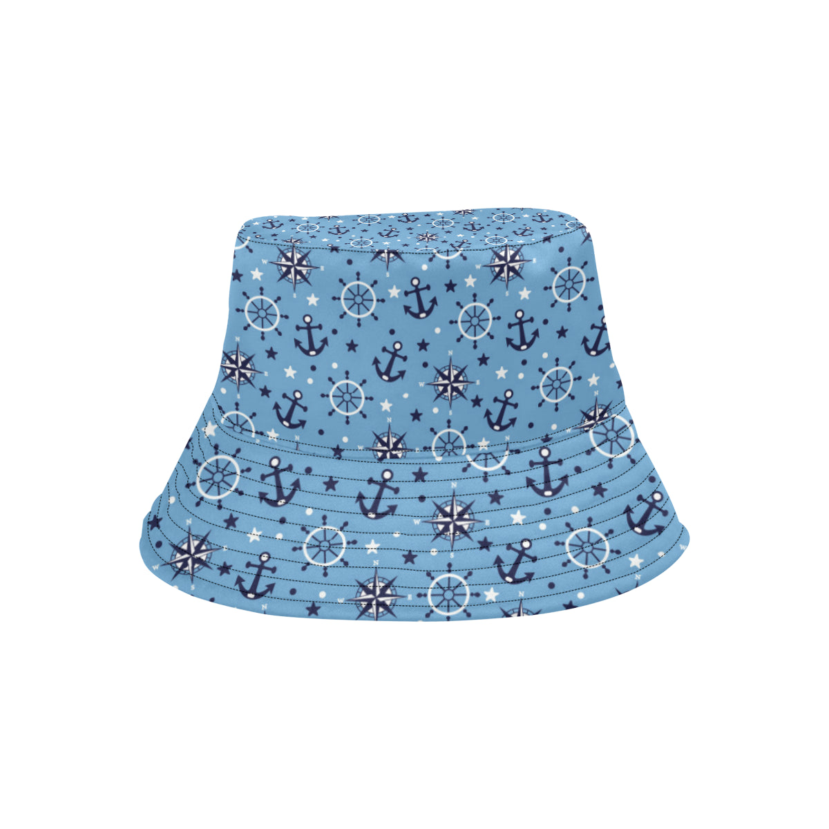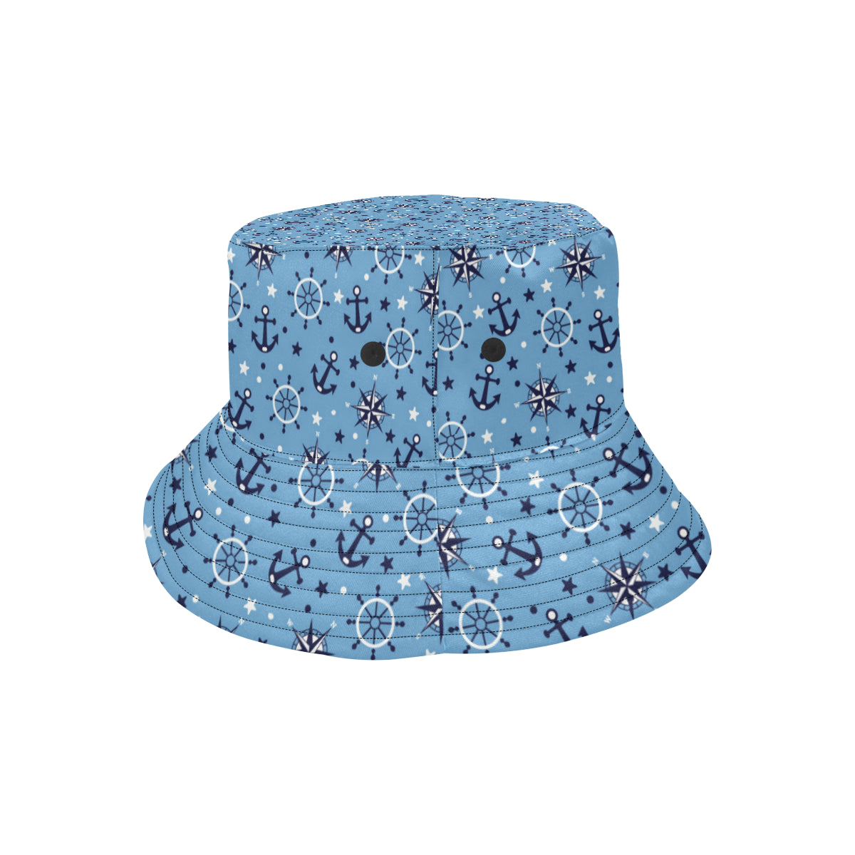 Anchors rudder compass star nautical pattern Unisex Bucket Hat
