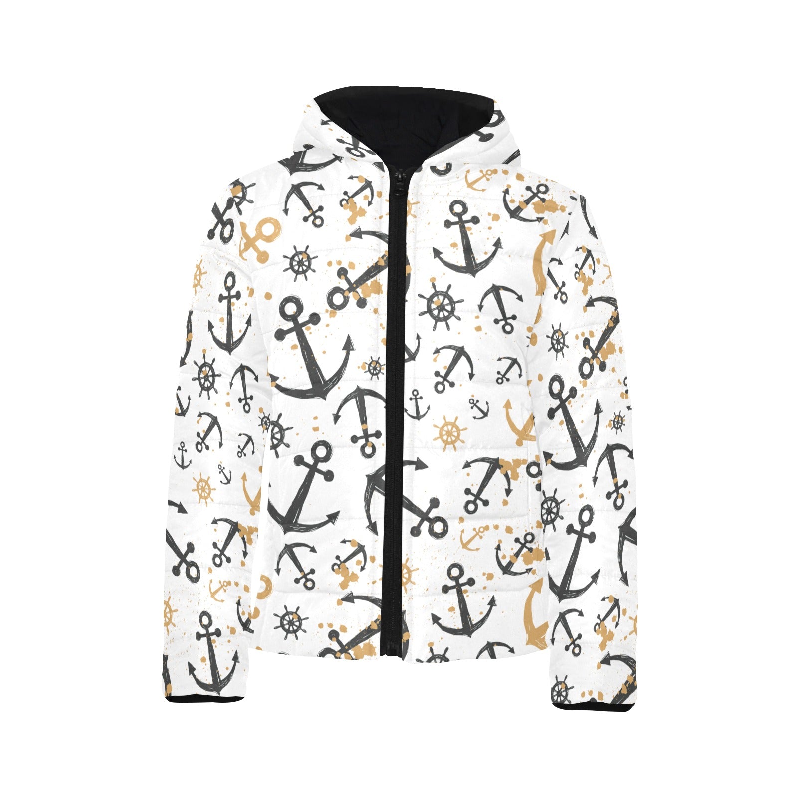 Anchors Rudders pattern Kids' Boys' Girls' Padded Hooded Jacket
