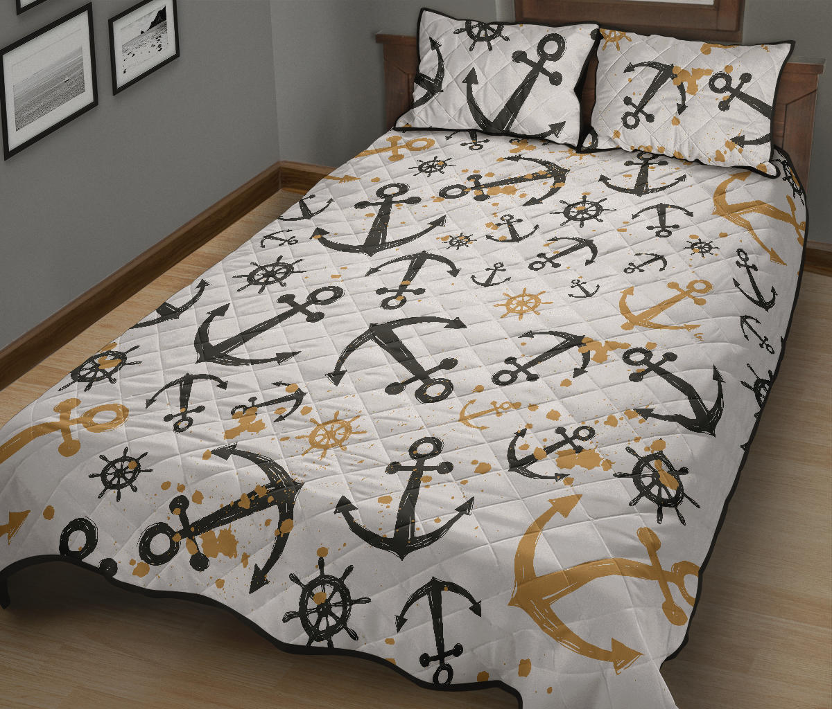 Anchors Rudders pattern Quilt Bed Set