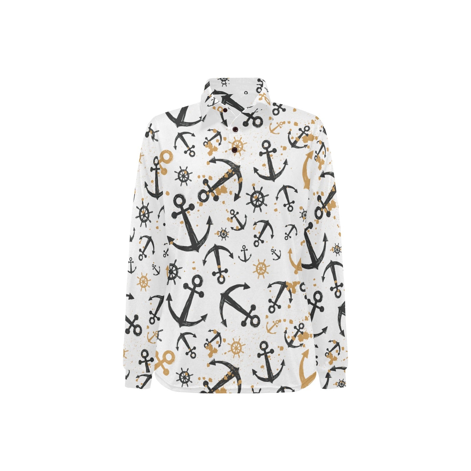 Anchors Rudders pattern Women's Long Sleeve Polo Shirt