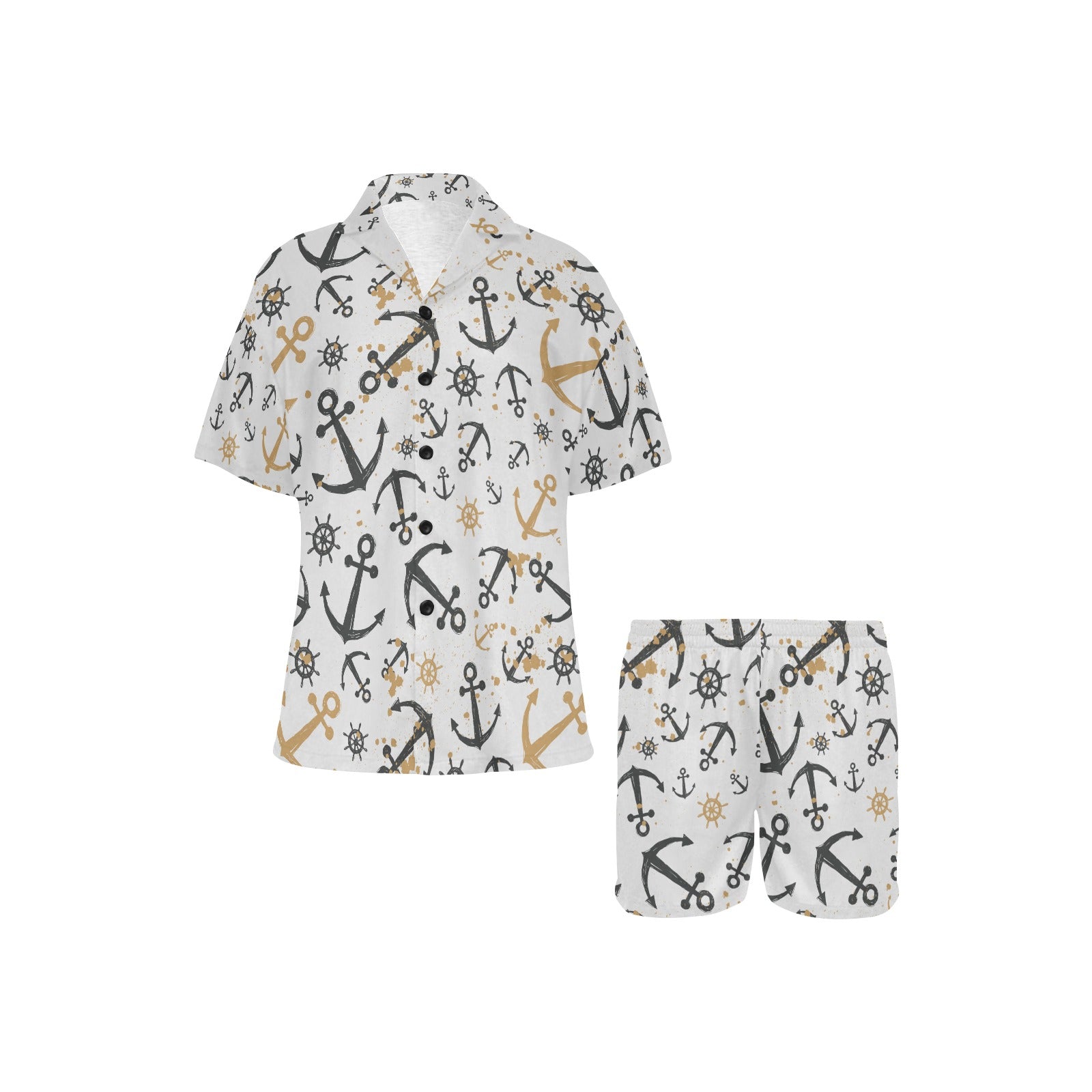 Anchors Rudders pattern Women's V-Neck Short Pajama Set