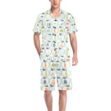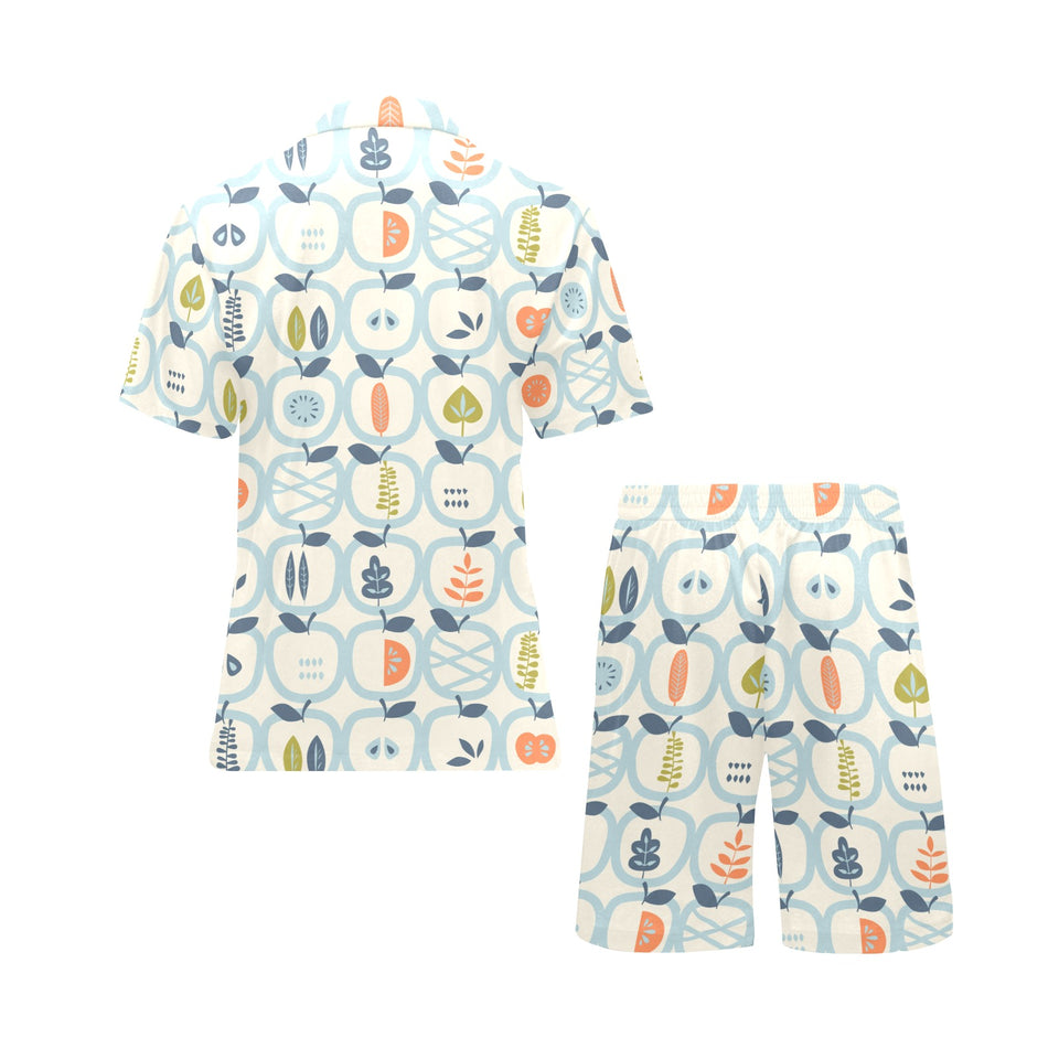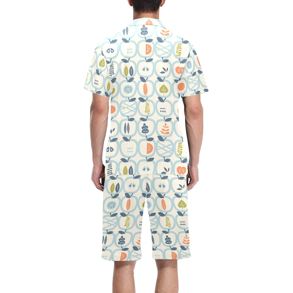 apples leaves pattern Men's V-Neck Short Pajama Set