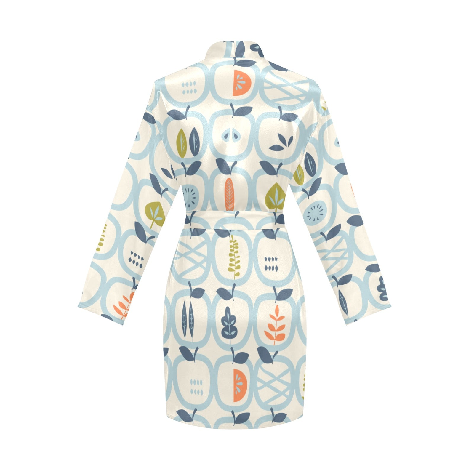 apples leaves pattern Women's Long Sleeve Belted Night Robe