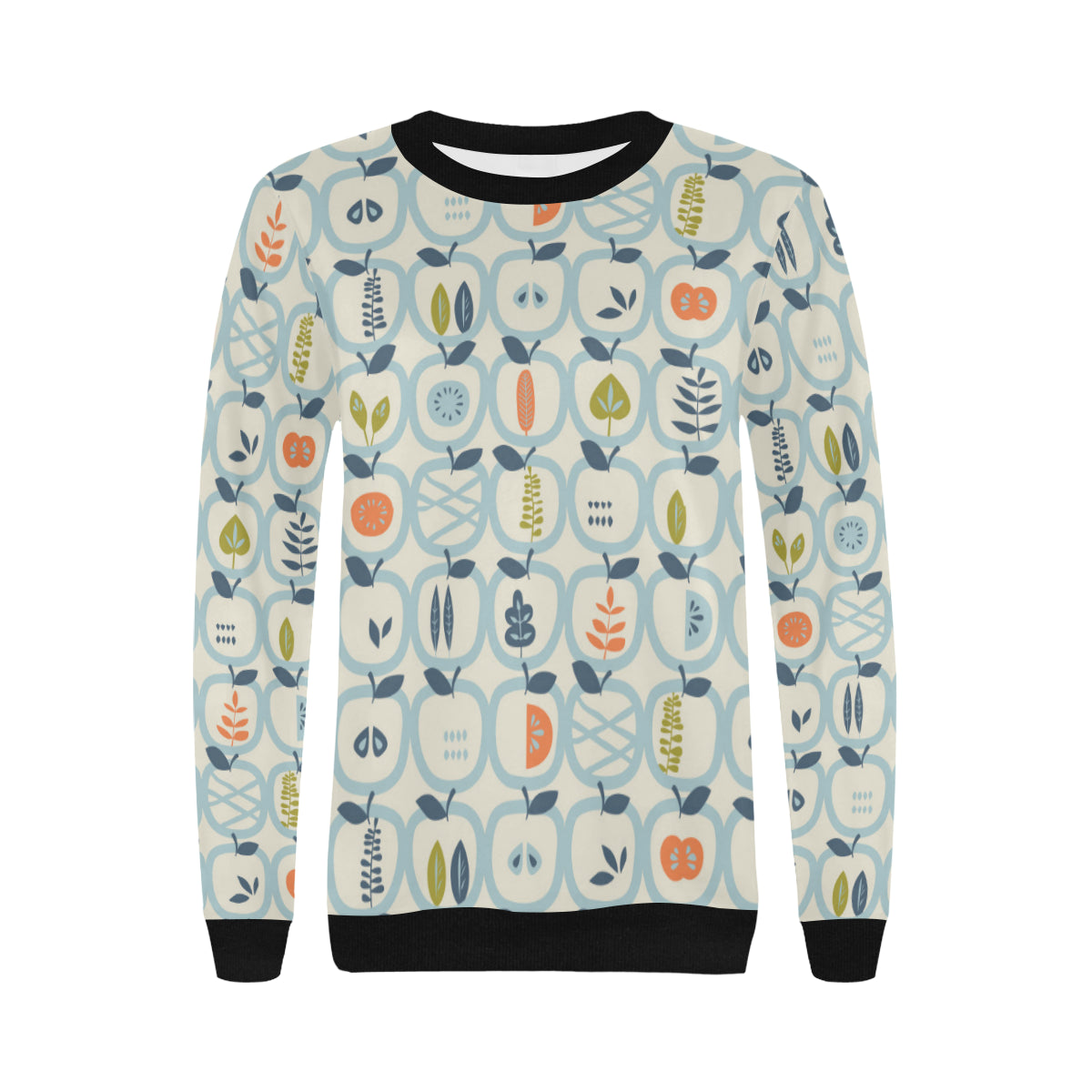 apples leaves pattern Women's Crew Neck Sweatshirt is a uniqued design and limited item. It made to order, hand printed, and sewn with love in our factory.