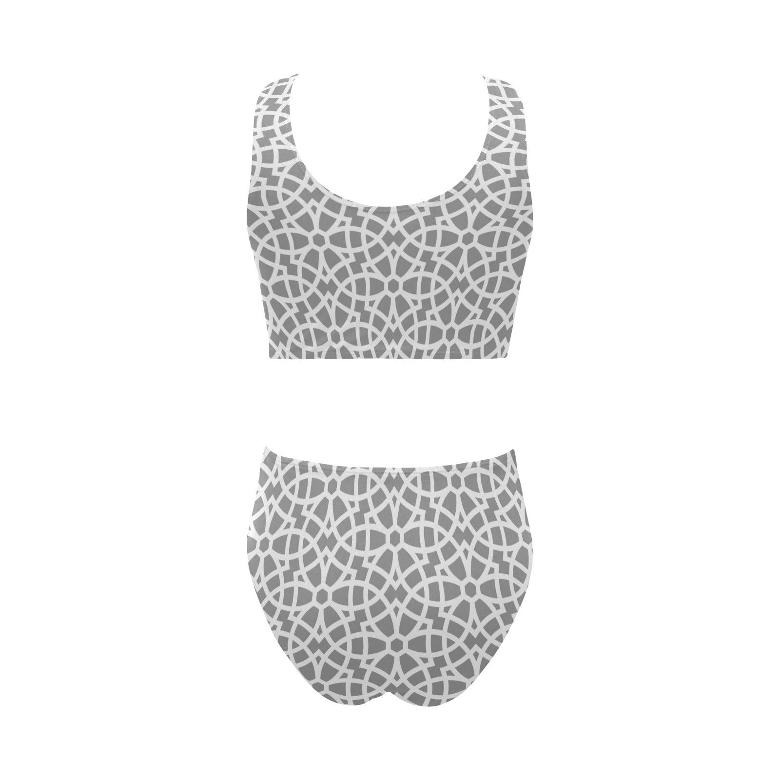 arabic gray pattern Chest Bowknot High Waisted Bikini Swimsuit