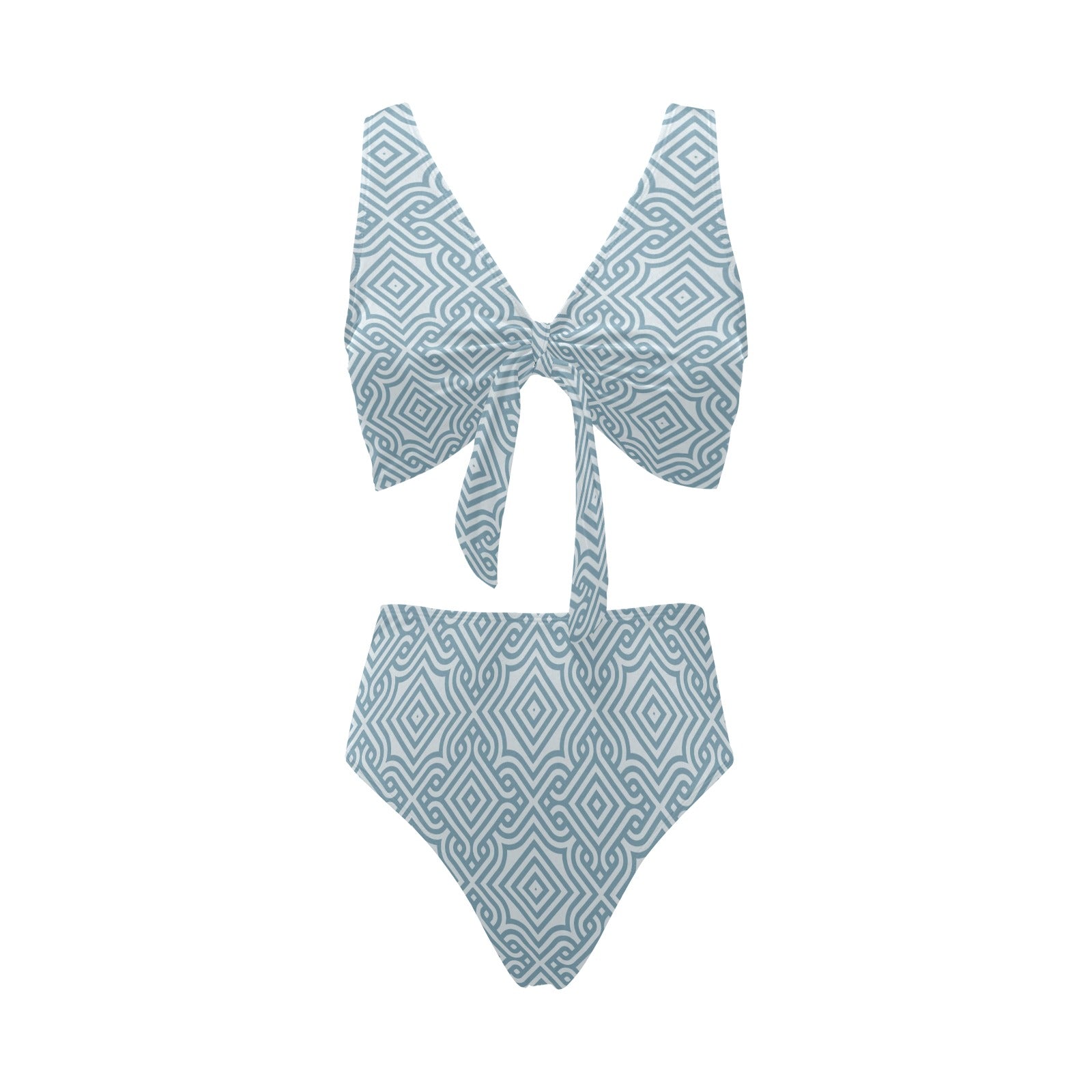 arabic pattern Chest Bowknot High Waisted Bikini Swimsuit