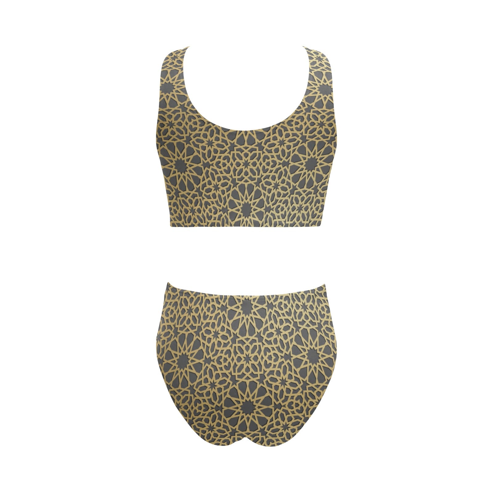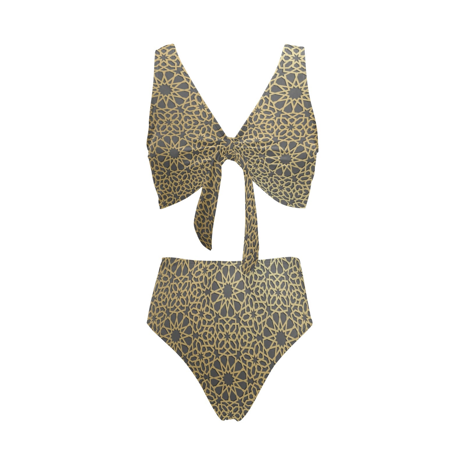 arabic star gold pattern Chest Bowknot High Waisted Bikini Swimsuit