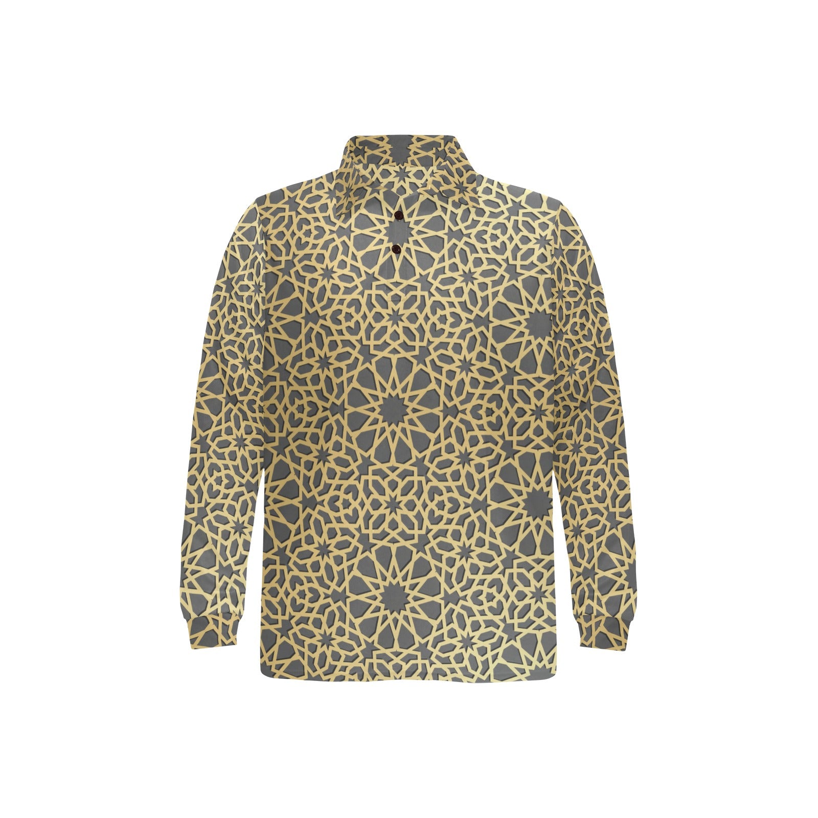 arabic star gold pattern Men's Long Sleeve Polo Shirt
