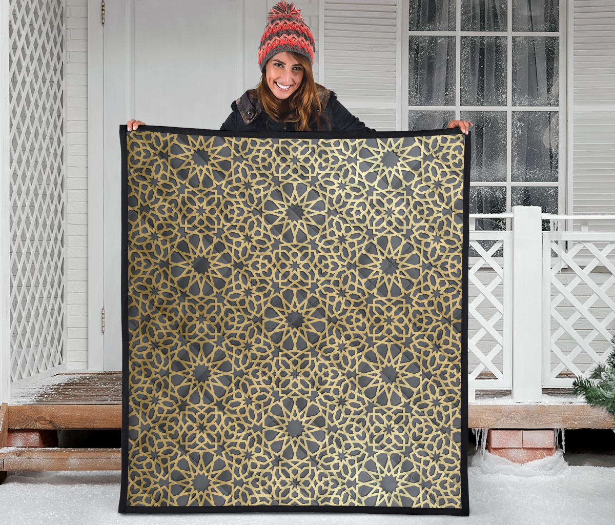 Arabic Star Gold Pattern Premium Quilt is a uniqued design and limited item. It made to order, hand printed, and sewn with love in our factory.