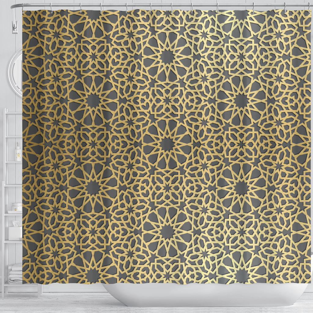 Arabic Star Gold Pattern Shower Curtain Fulfilled In US