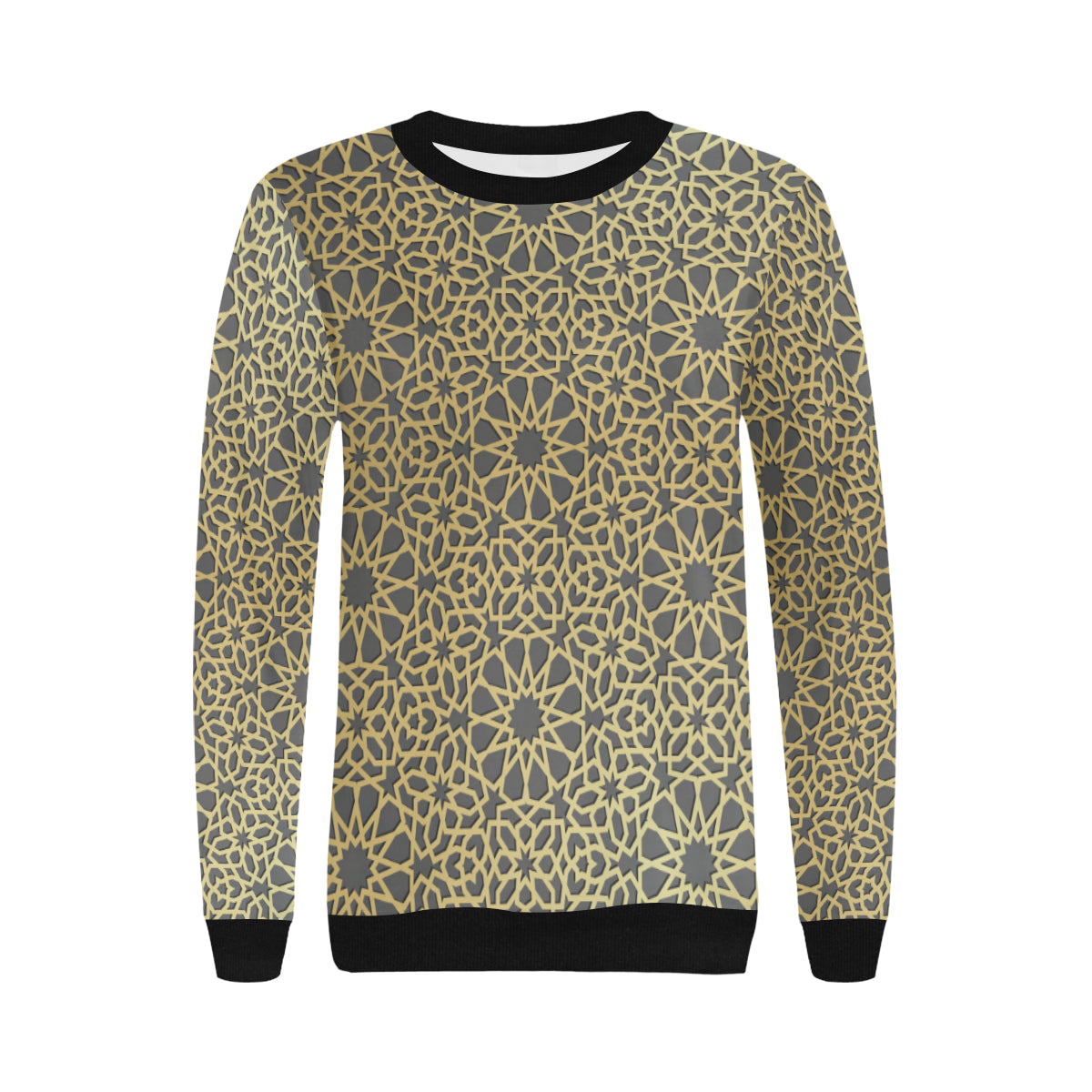 arabic star gold pattern Women's Crew Neck Sweatshirt