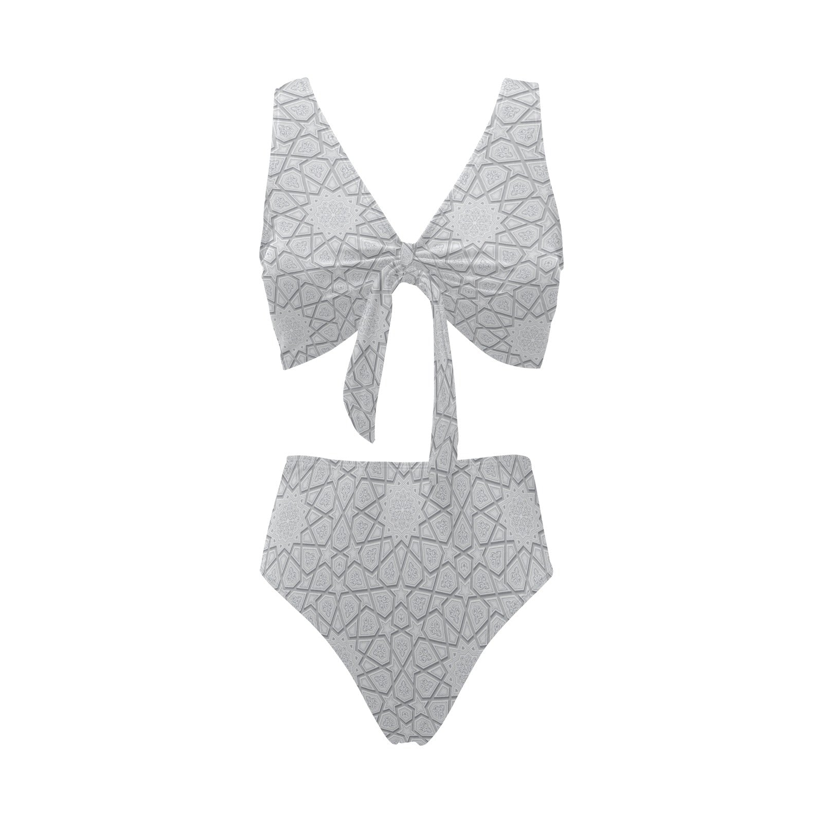 arabic star pattern Chest Bowknot High Waisted Bikini Swimsuit