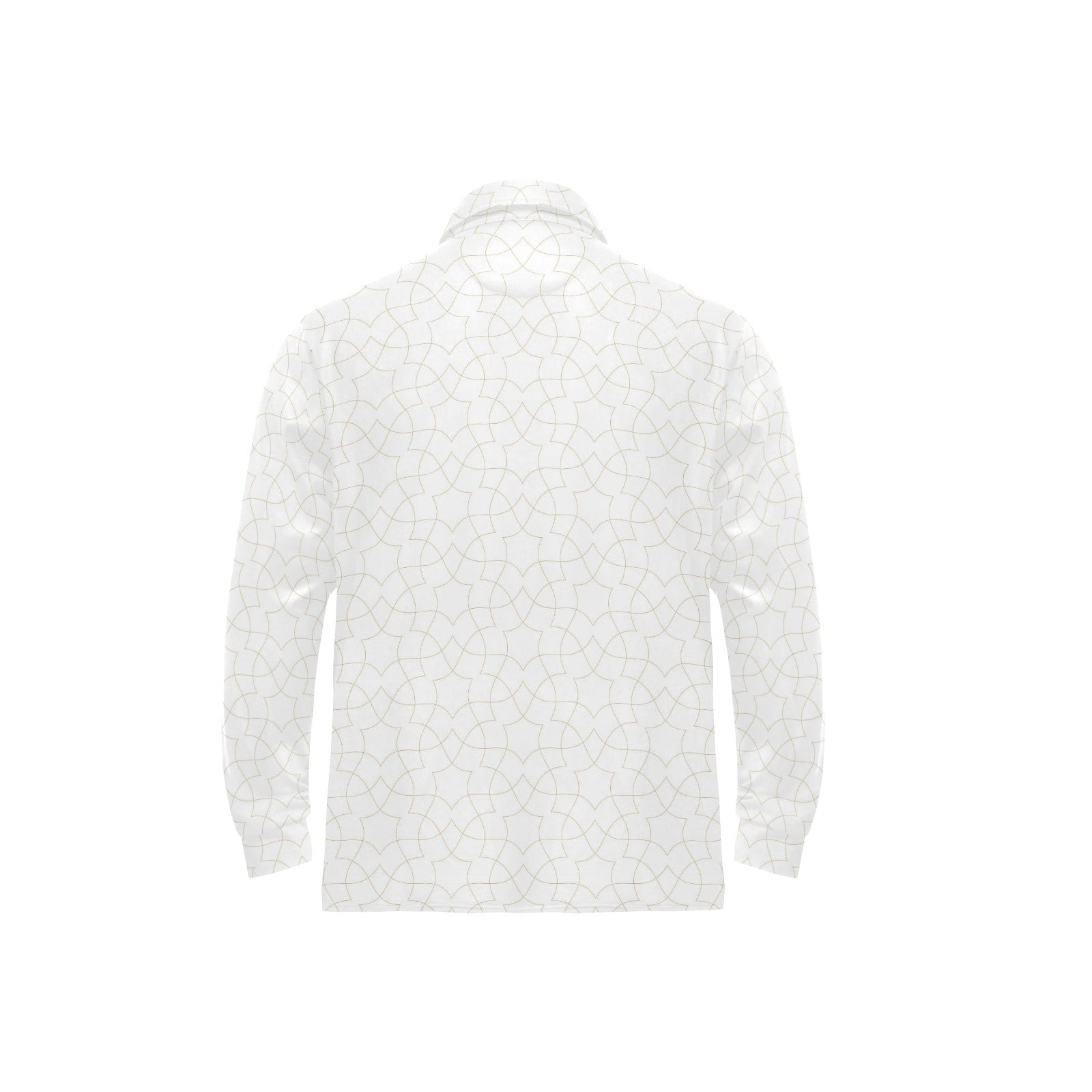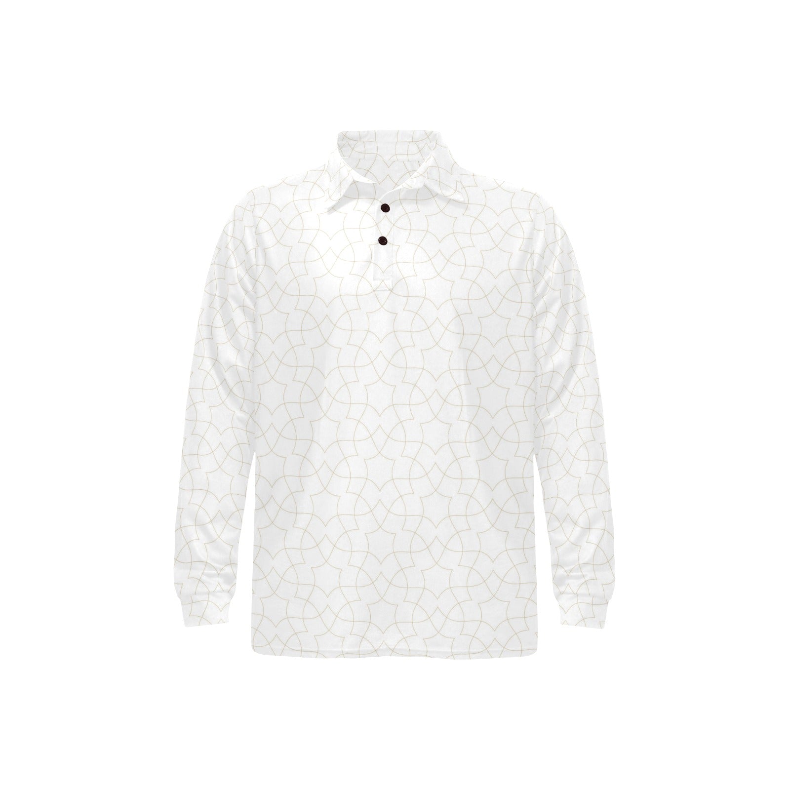 arabic white pattern Men's Long Sleeve Polo Shirt