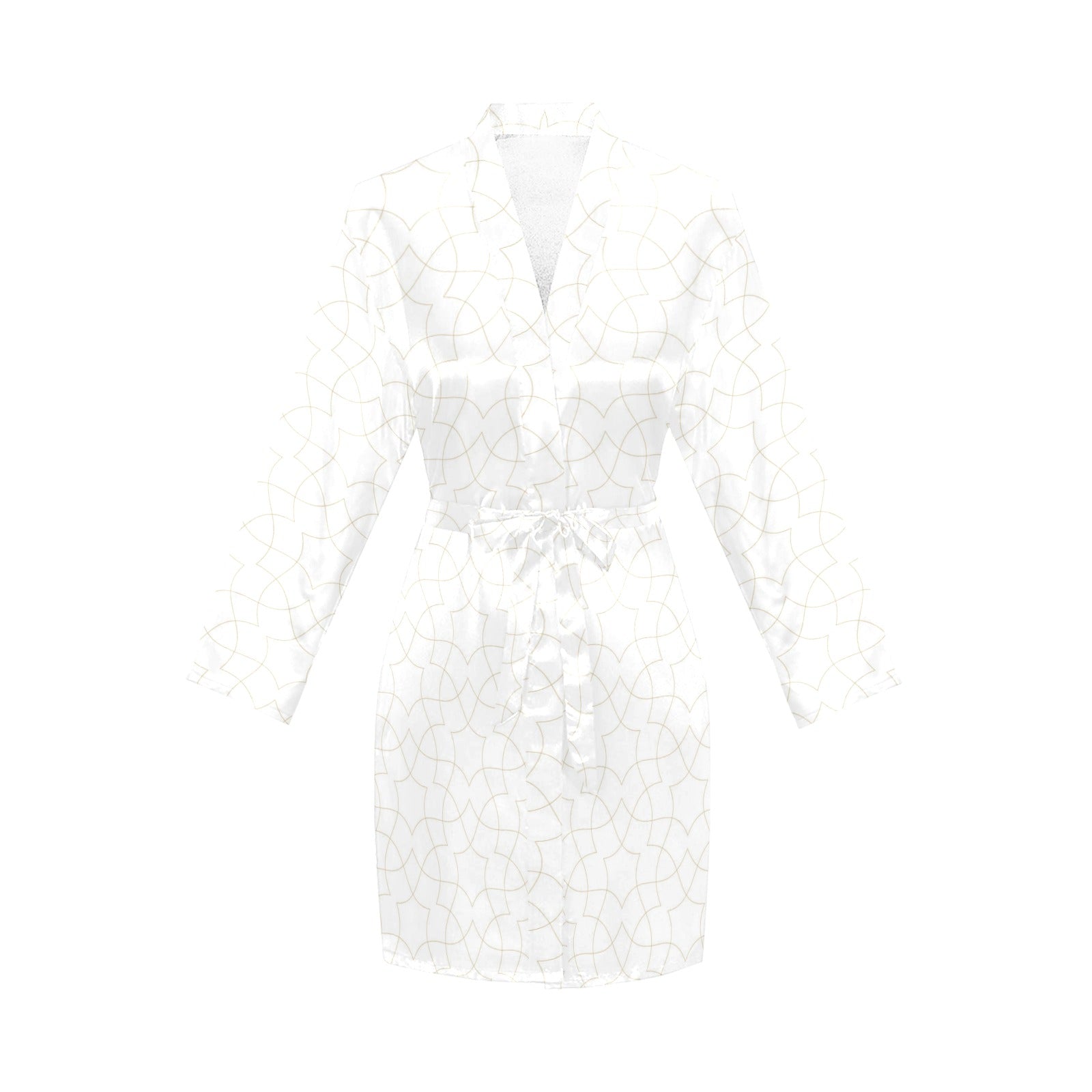 arabic white pattern Women's Long Sleeve Belted Night Robe