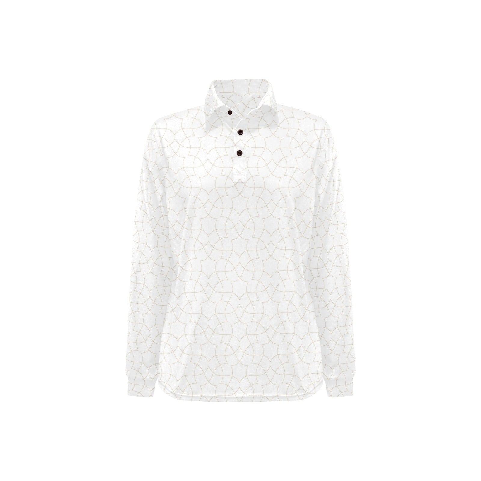 arabic white pattern Women's Long Sleeve Polo Shirt