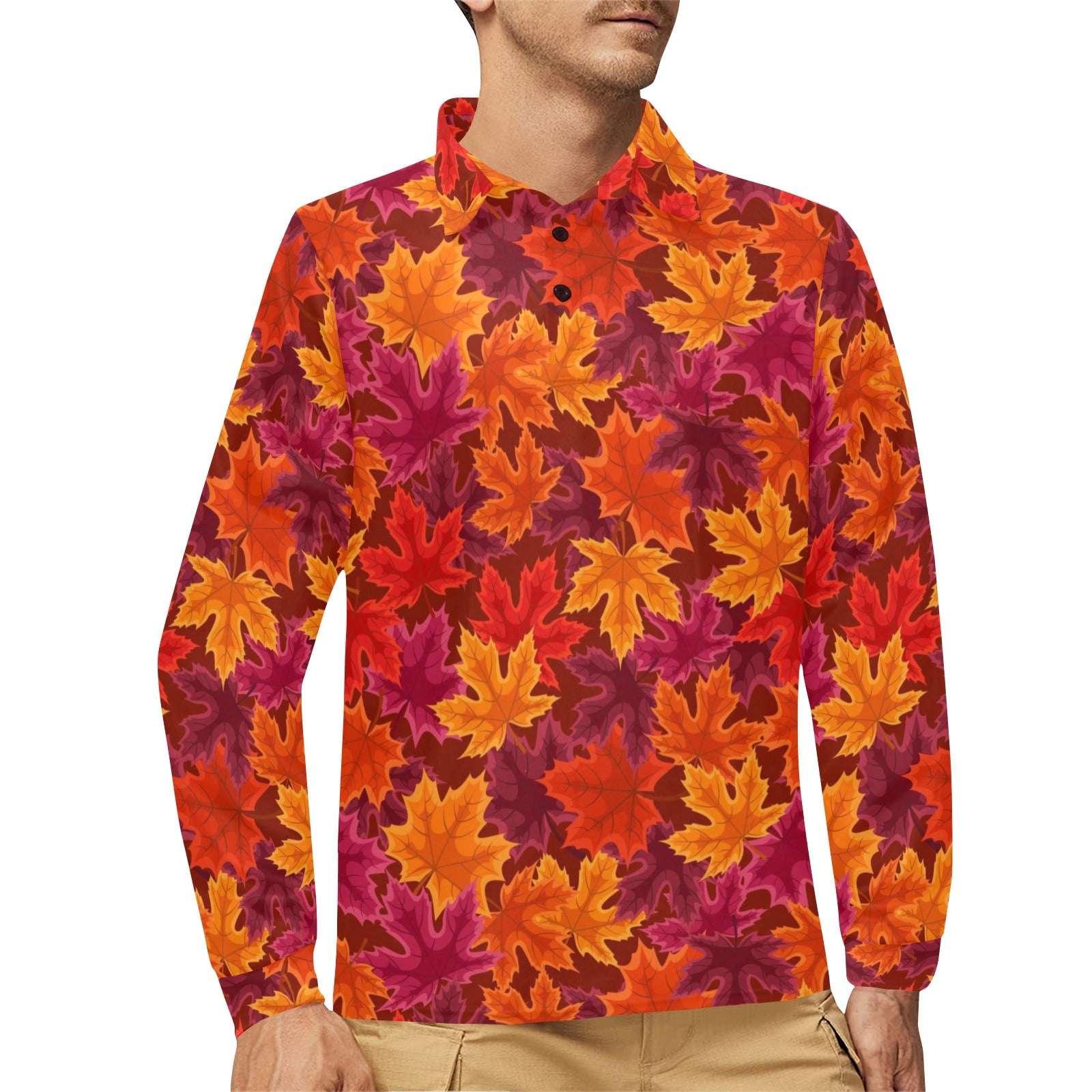 Autumn maple leaf pattern Men's Long Sleeve Polo Shirt