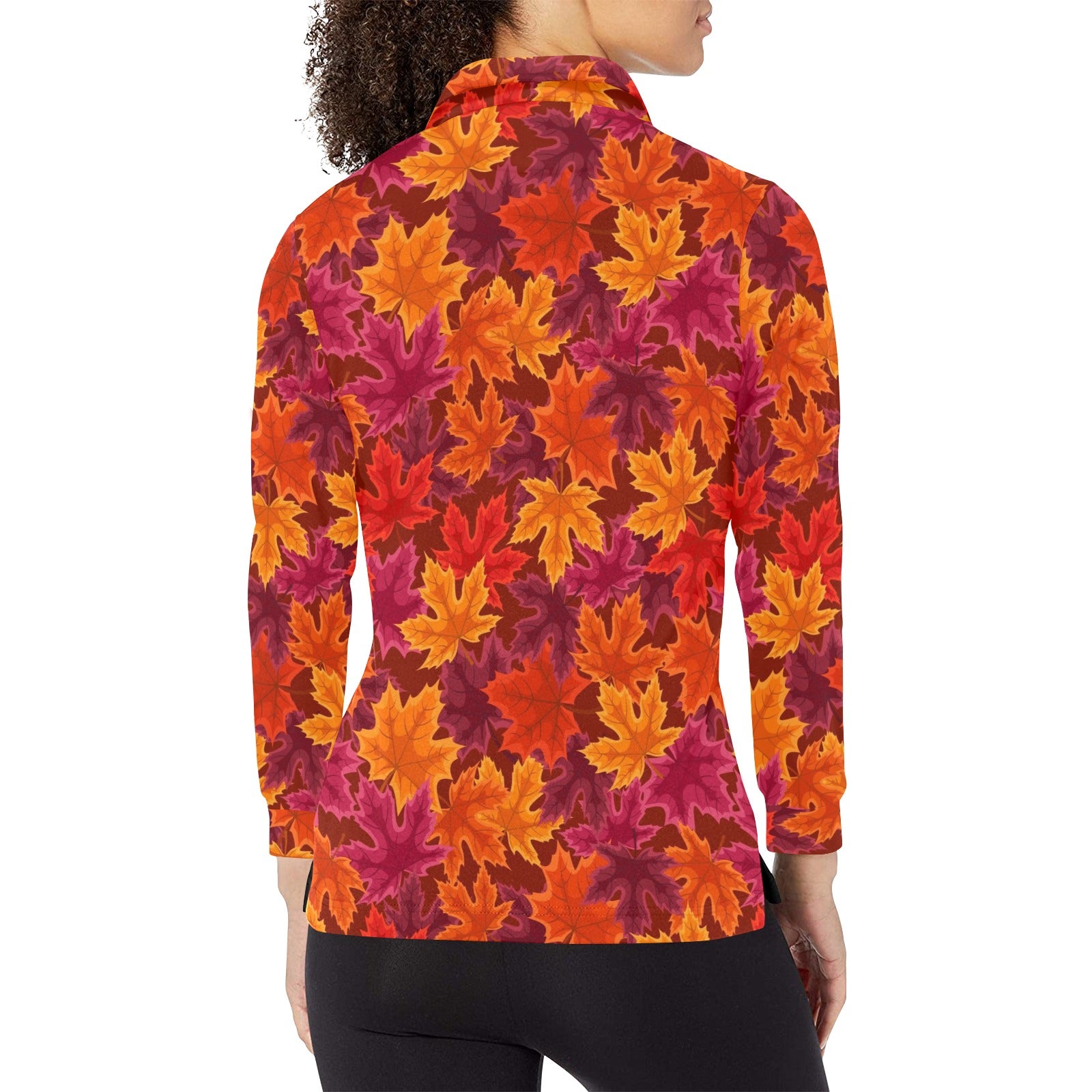 Autumn maple leaf pattern Women's Long Sleeve Polo Shirt
