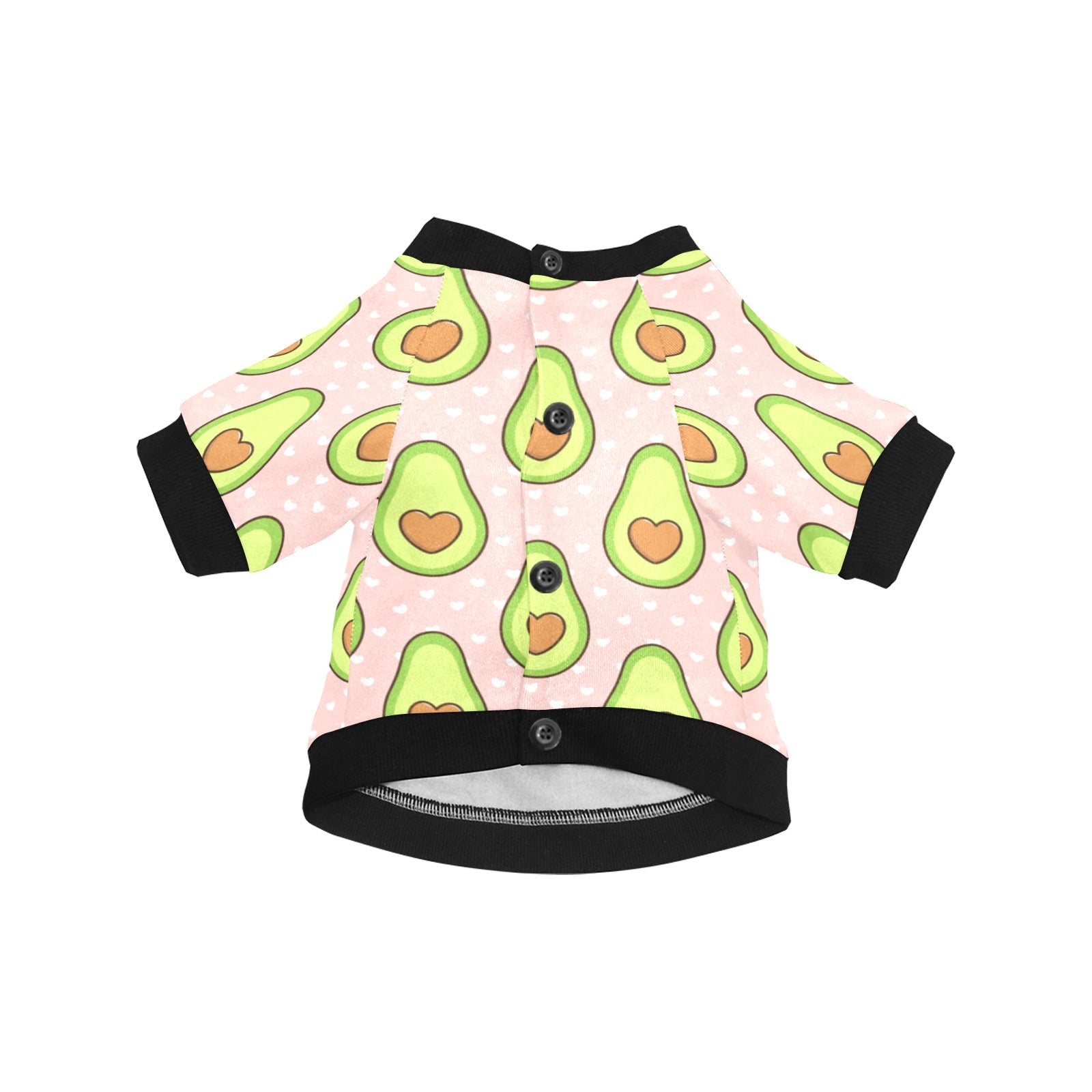 Avocado heart pink background All Over Print Pet Dog Round Neck Fuzzy Shirt