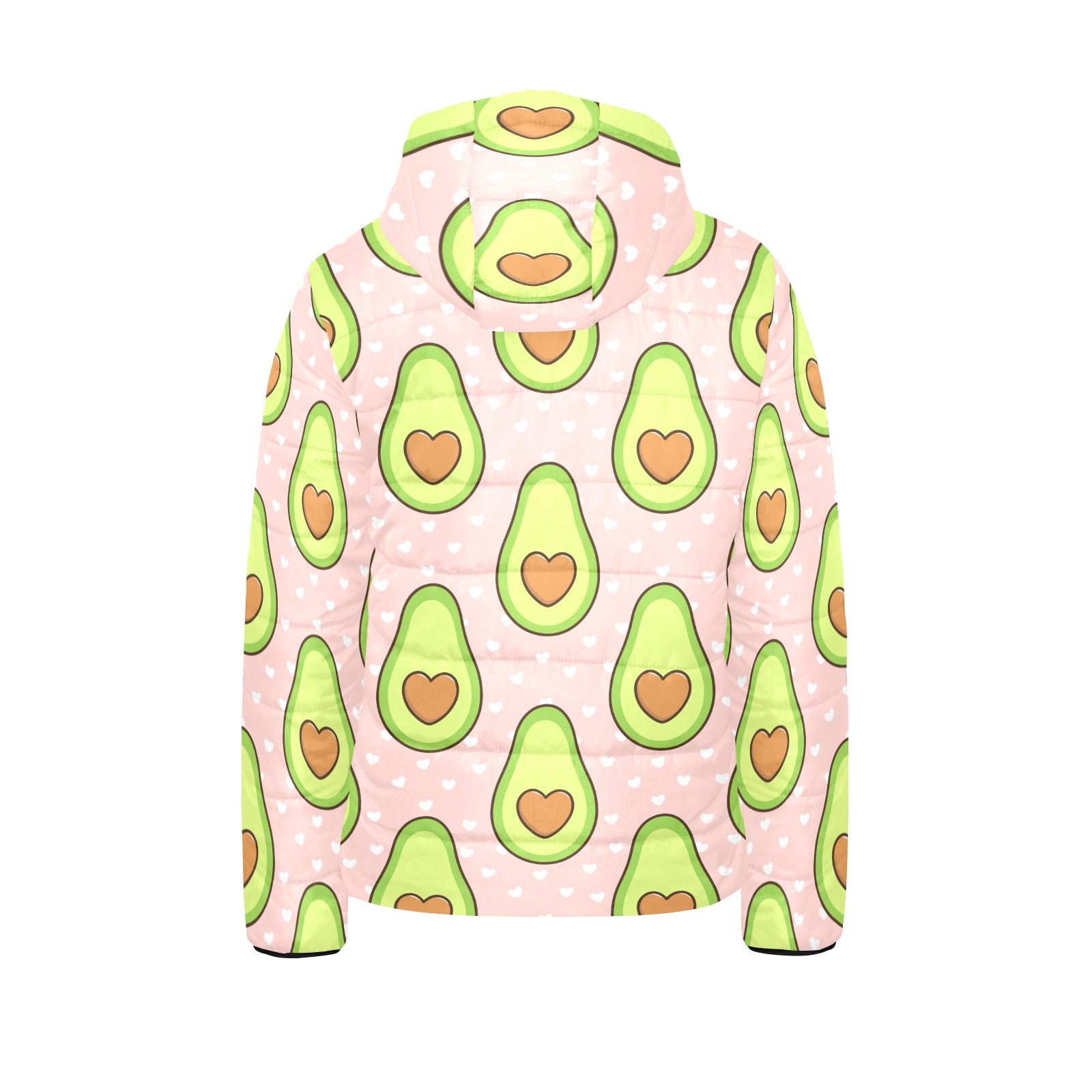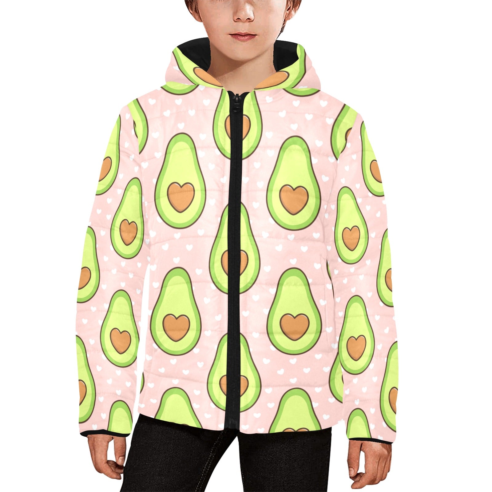 Avocado heart pink background Kids' Boys' Girls' Padded Hooded Jacket