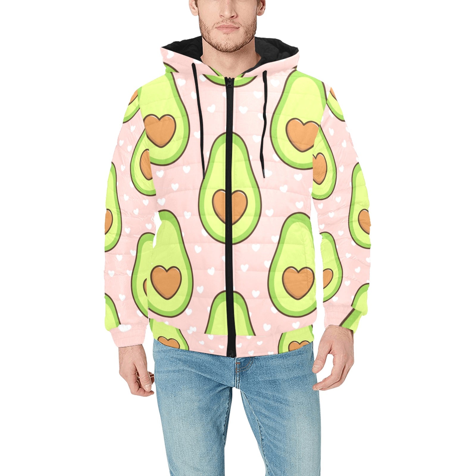 Avocado heart pink background Men's Padded Hooded Jacket