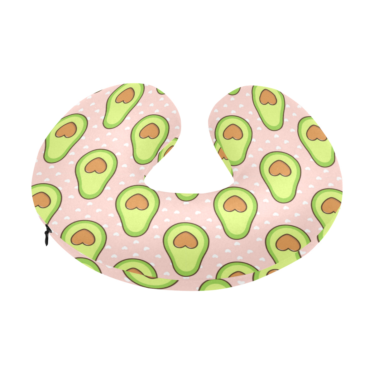 Avocado heart pink background U-Shaped Travel Neck Pillow