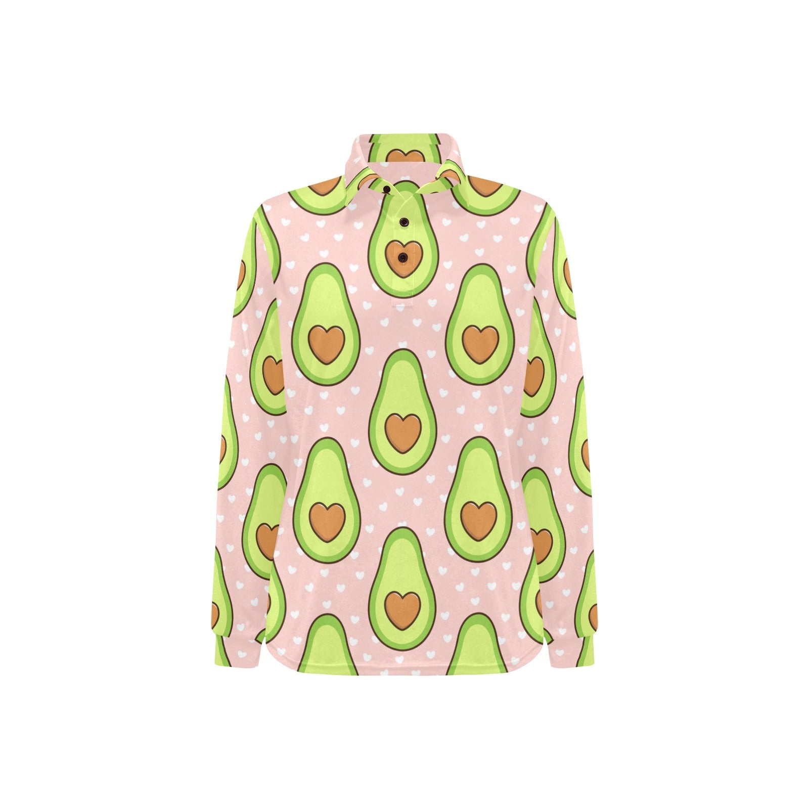 Avocado heart pink background Women's Long Sleeve Polo Shirt