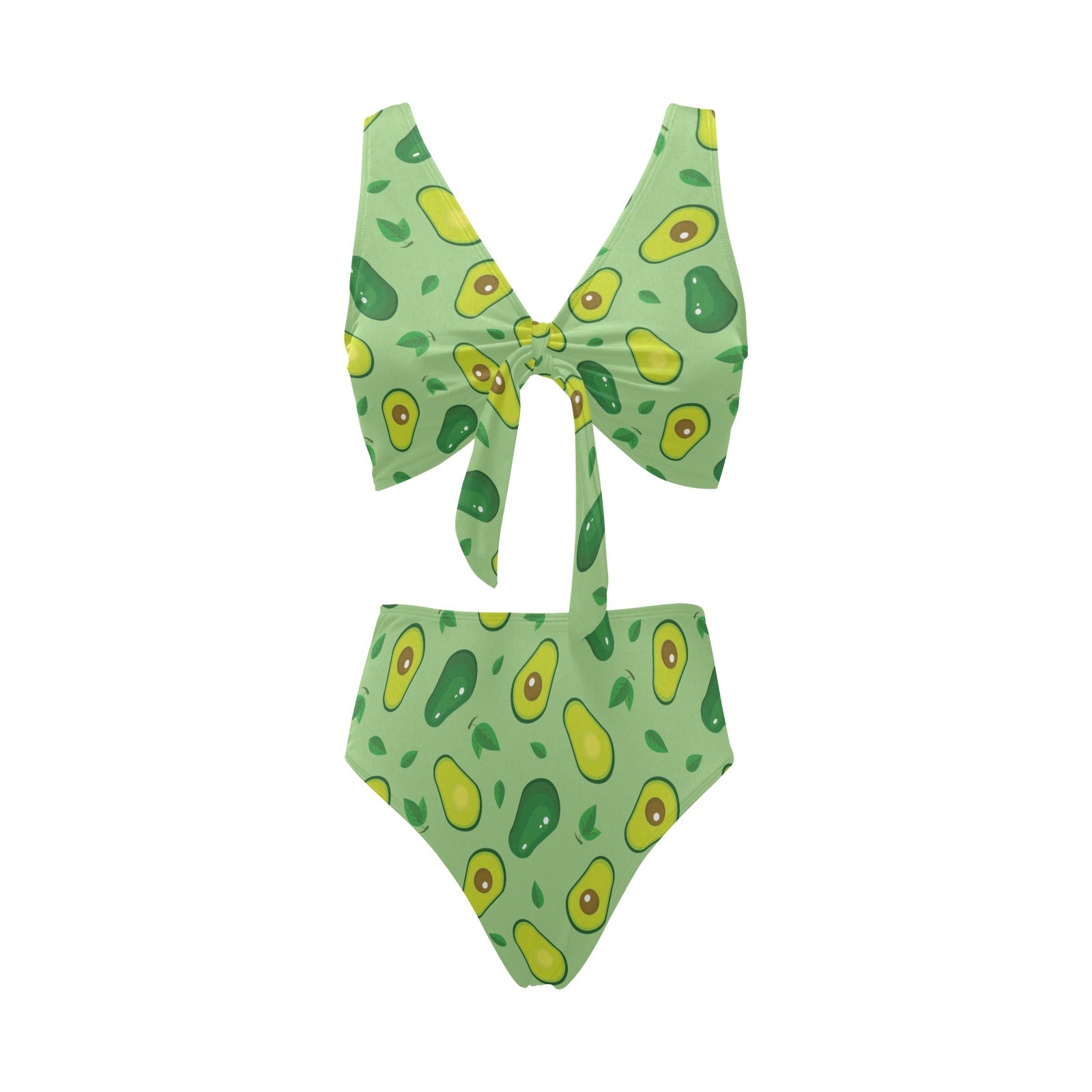 Avocado pattern green background Chest Bowknot High Waisted Bikini Swimsuit