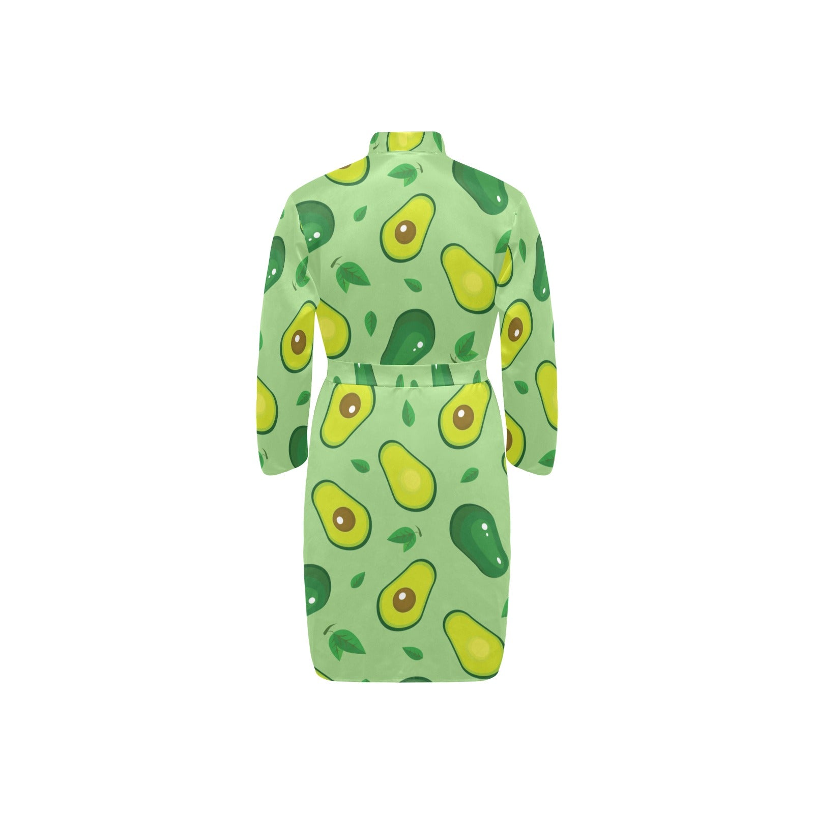 Avocado pattern green background Men's Long Sleeve Belted Night Robe