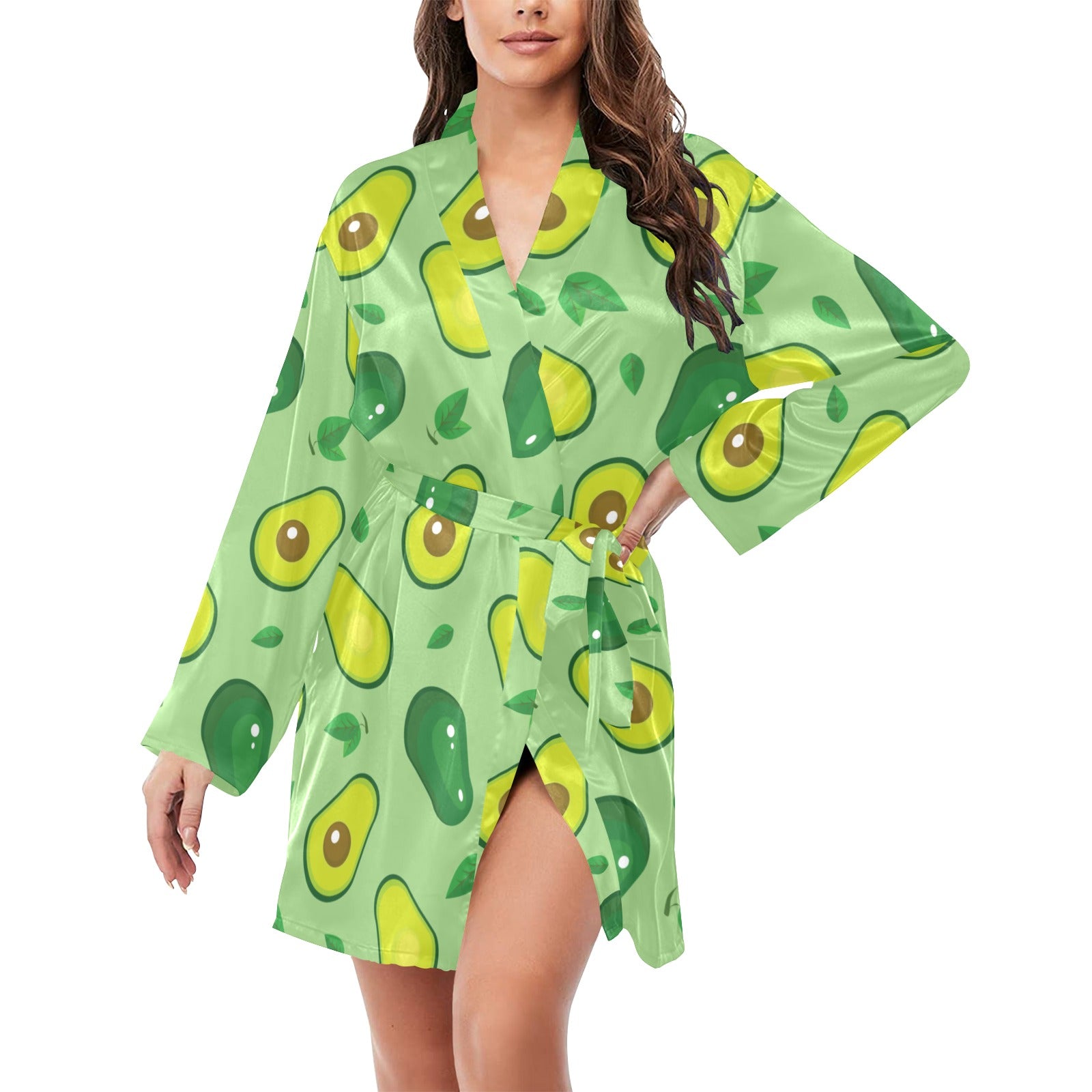 Avocado pattern green background Women's Long Sleeve Belted Night Robe