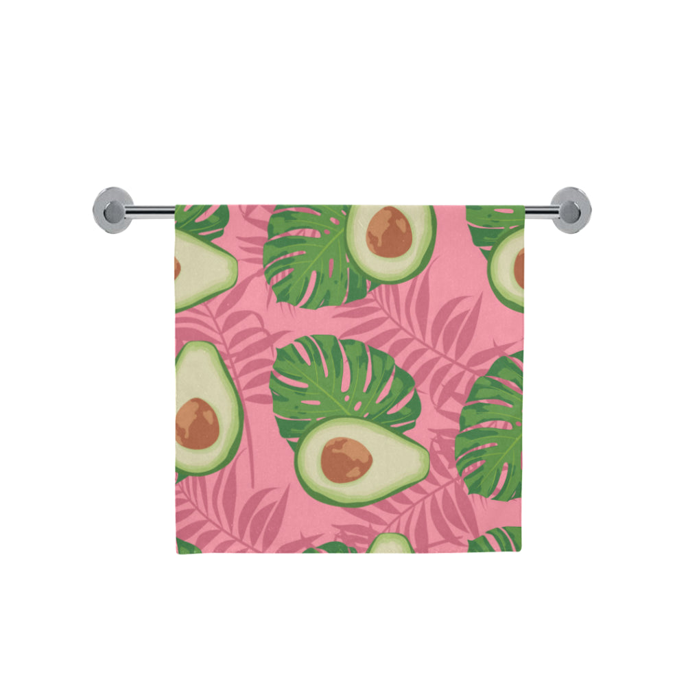 Avocado slices leaves pink back ground Bath Towel 30"x56" is a uniqued design and limited item. It made to order, hand printed, and sewn with love in our factory.