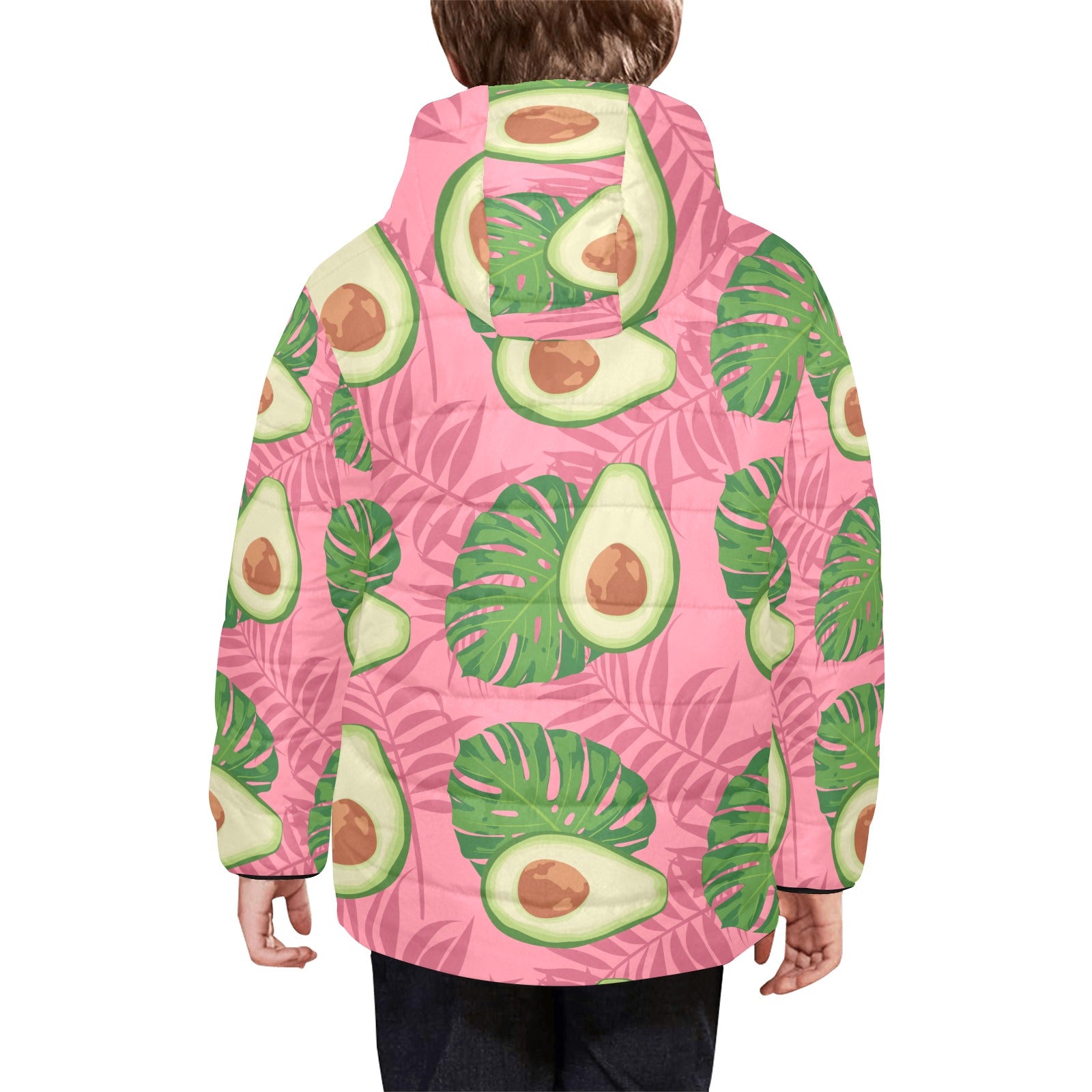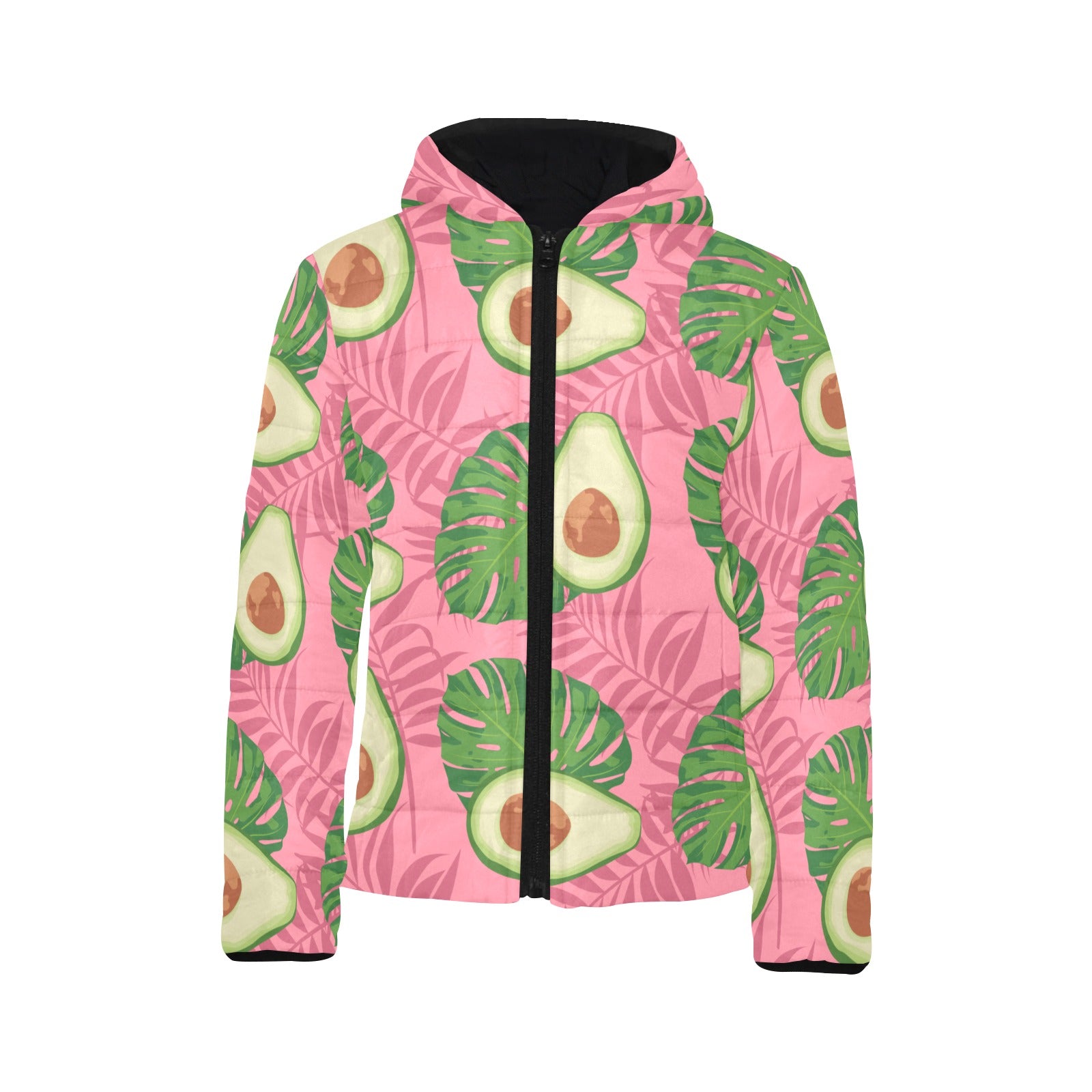 Avocado slices leaves pink back ground Kids' Boys' Girls' Padded Hooded Jacket