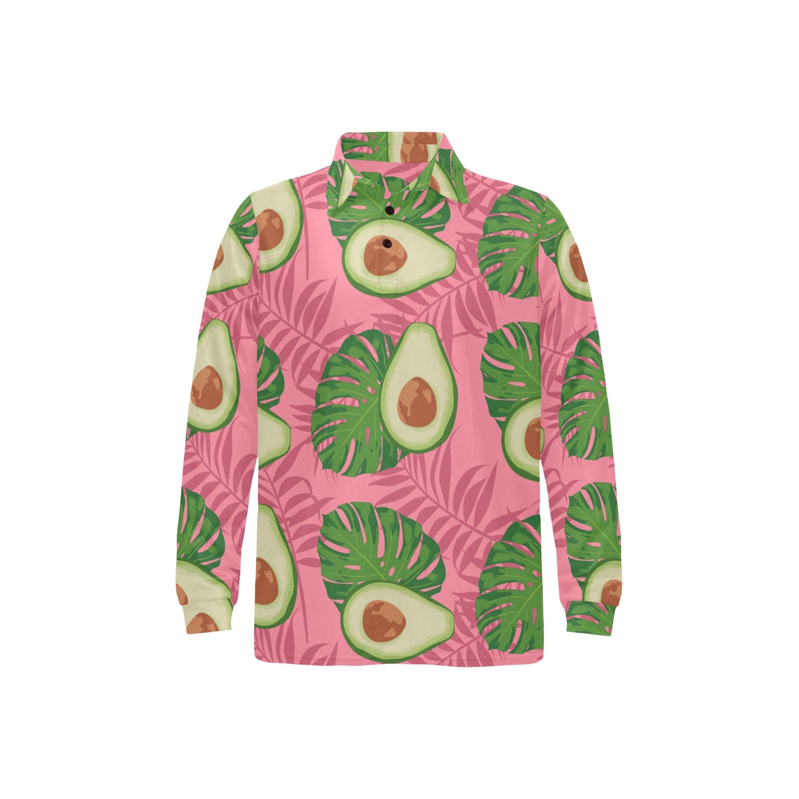 Avocado slices leaves pink back ground Men's Long Sleeve Polo Shirt
